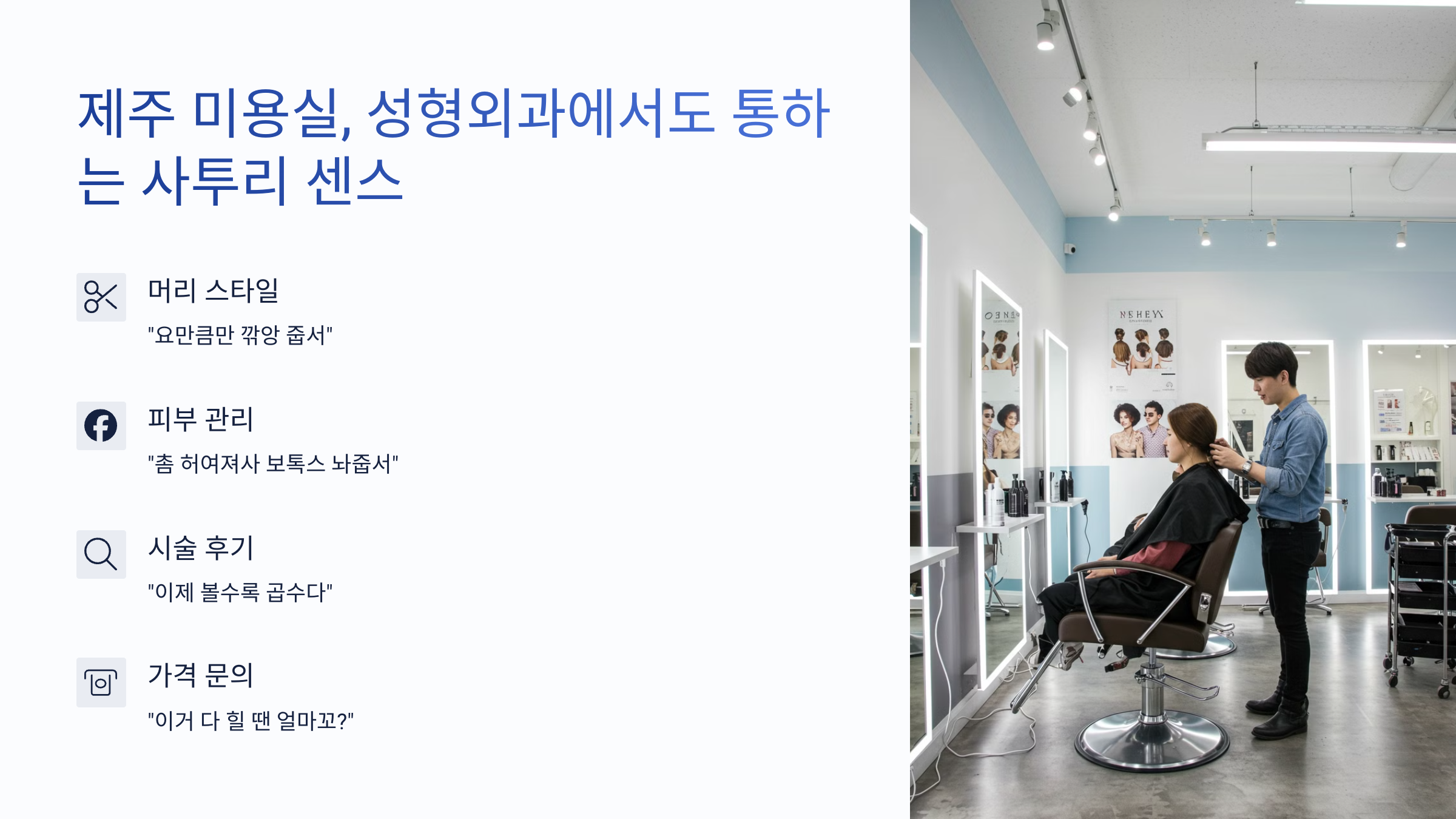 이제 다음은 미용실, 성형외과, 네일샵 등에서도 통하는 실전 제주 사투리 응대 노하우 알려드릴게요!