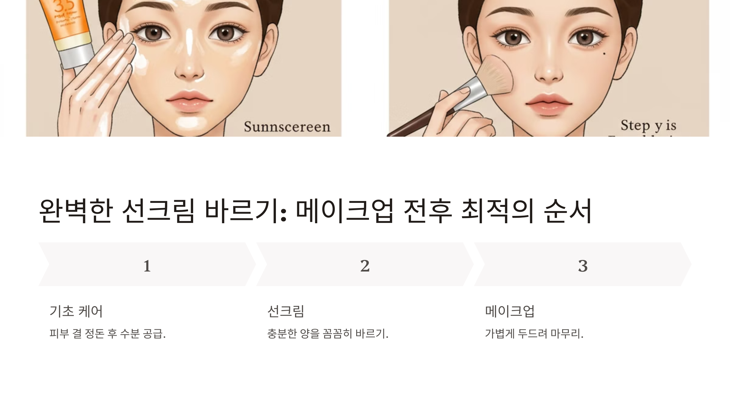 💡 아래에서 메이크업 단계별 선크림 바르는 순서를 확인하고, 자연스럽고 촉촉한 베이스를 완성해 보세요! ✅