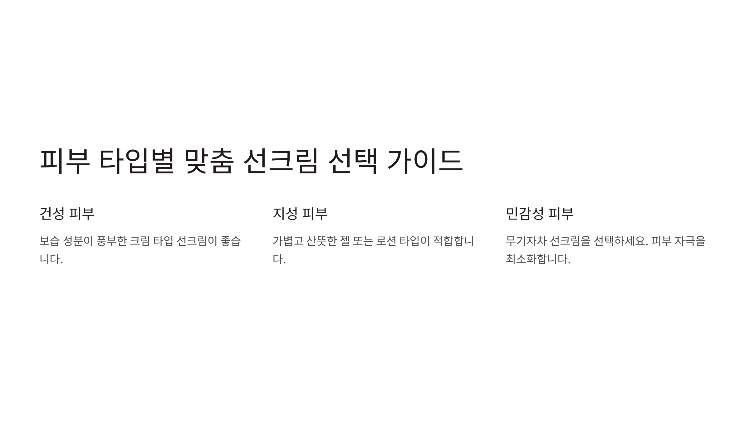 | 피부 타입 | 추천 선크림 | 특징 |