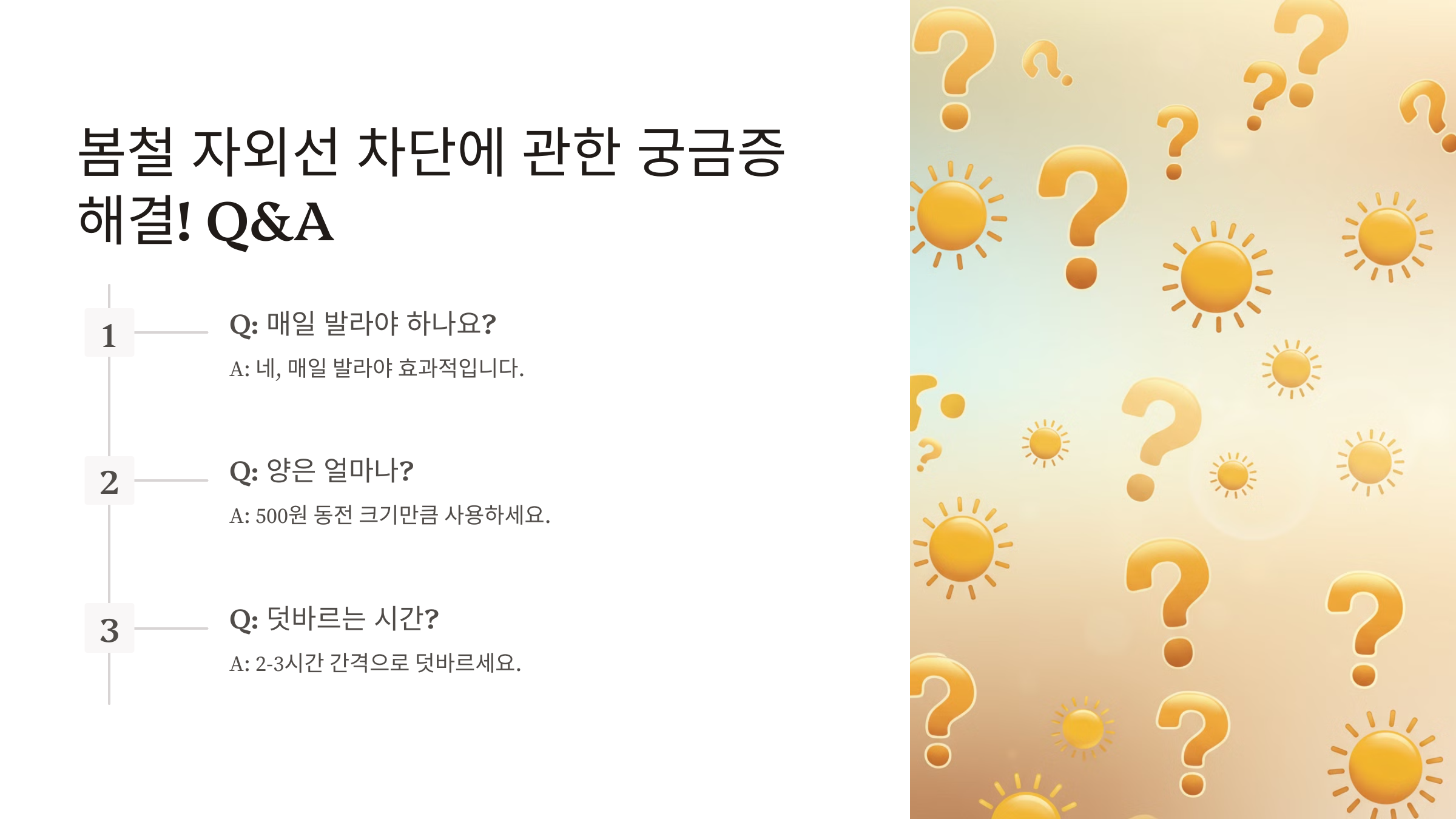 ❓ "선크림 사용법 & 자외선 차단에 대해 더 궁금한 점이 있다면?" 다음 섹션에서 자주 묻는 질문 (FAQ)을 확인해 보세요! ✅