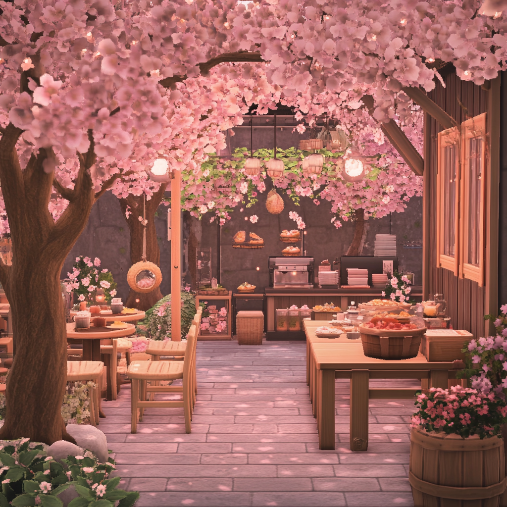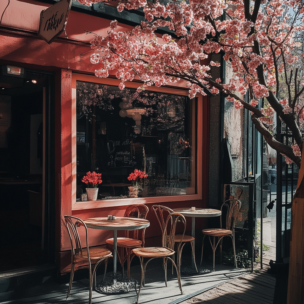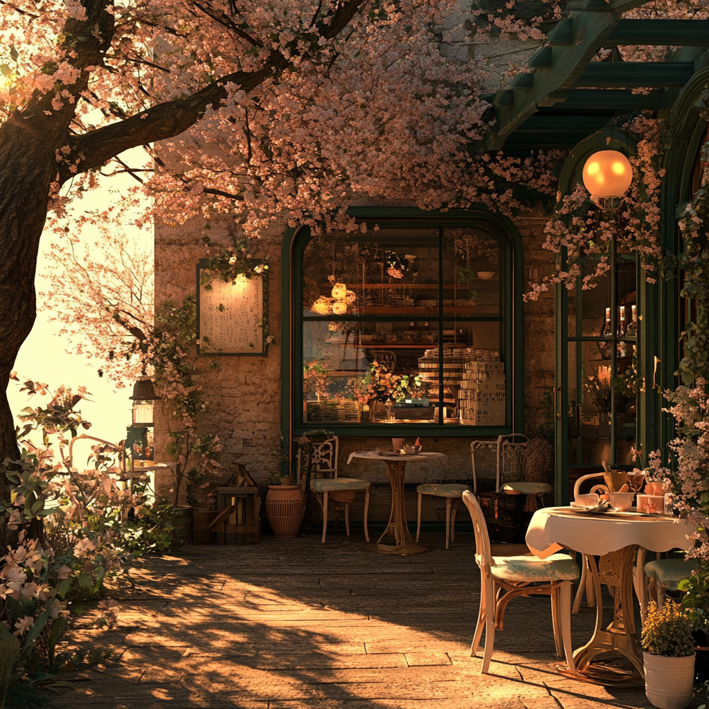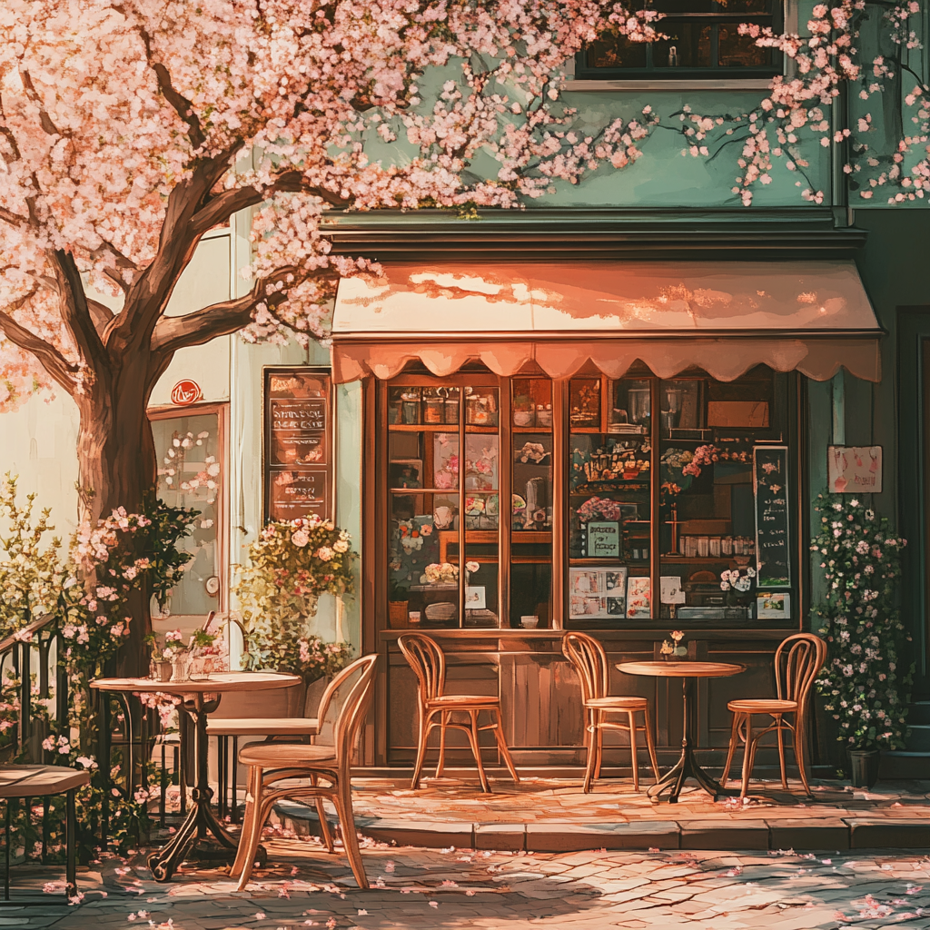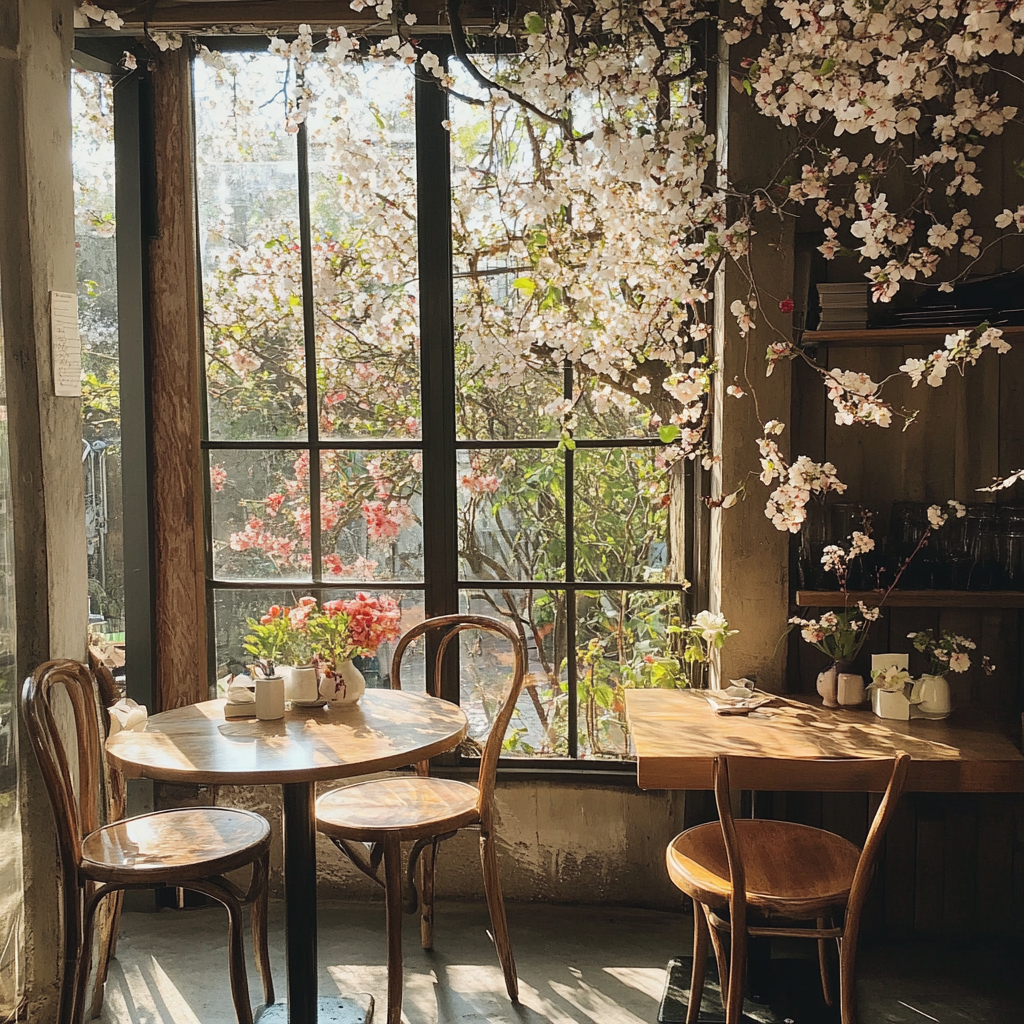 먼저, 벚꽃이 흐드러지게 핀 카페부터 살펴볼까요? 🌸