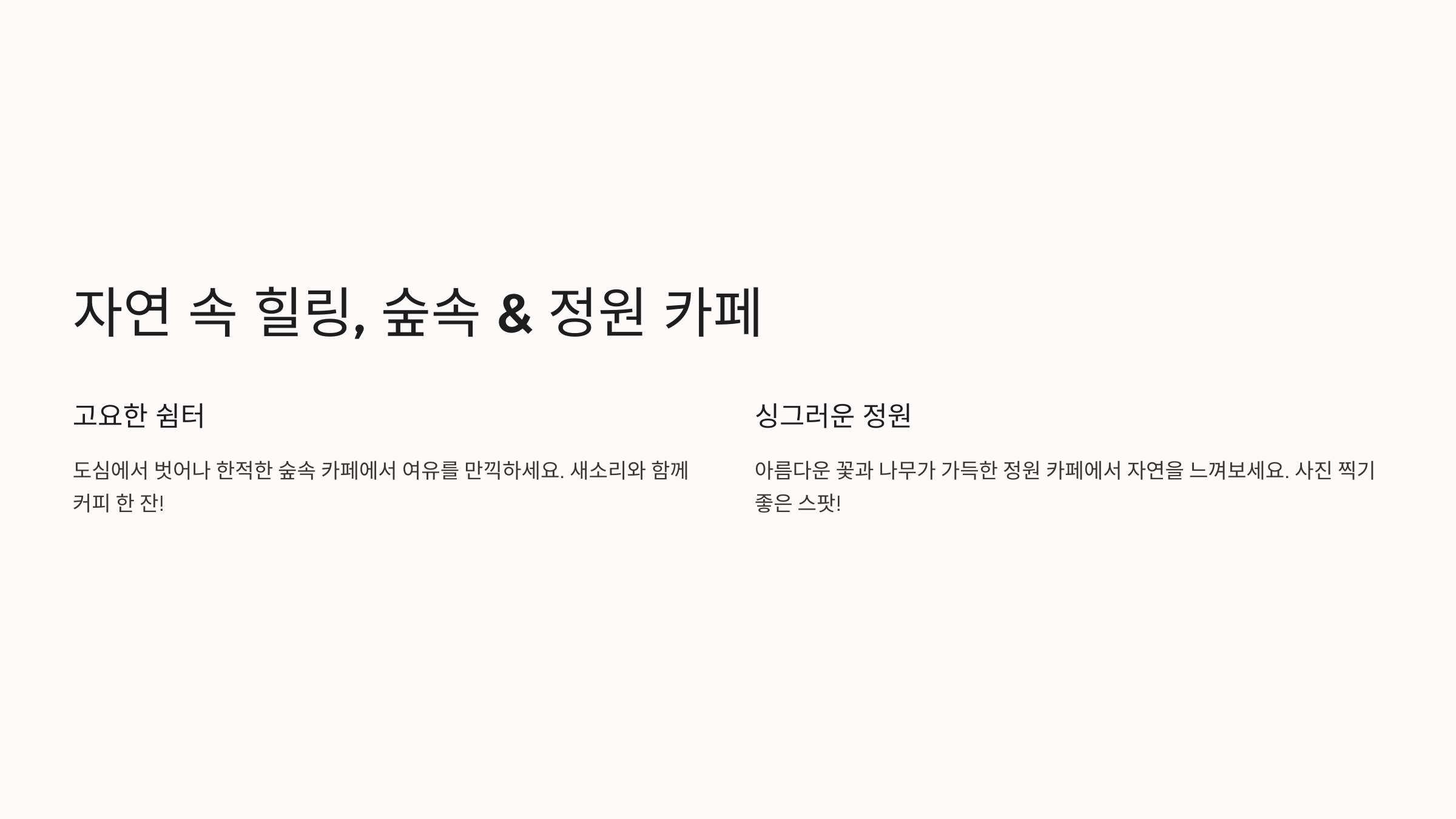 다음은 초록빛 가득한 숲속 & 정원 카페를 추천해 드릴게요! 🌿☕
