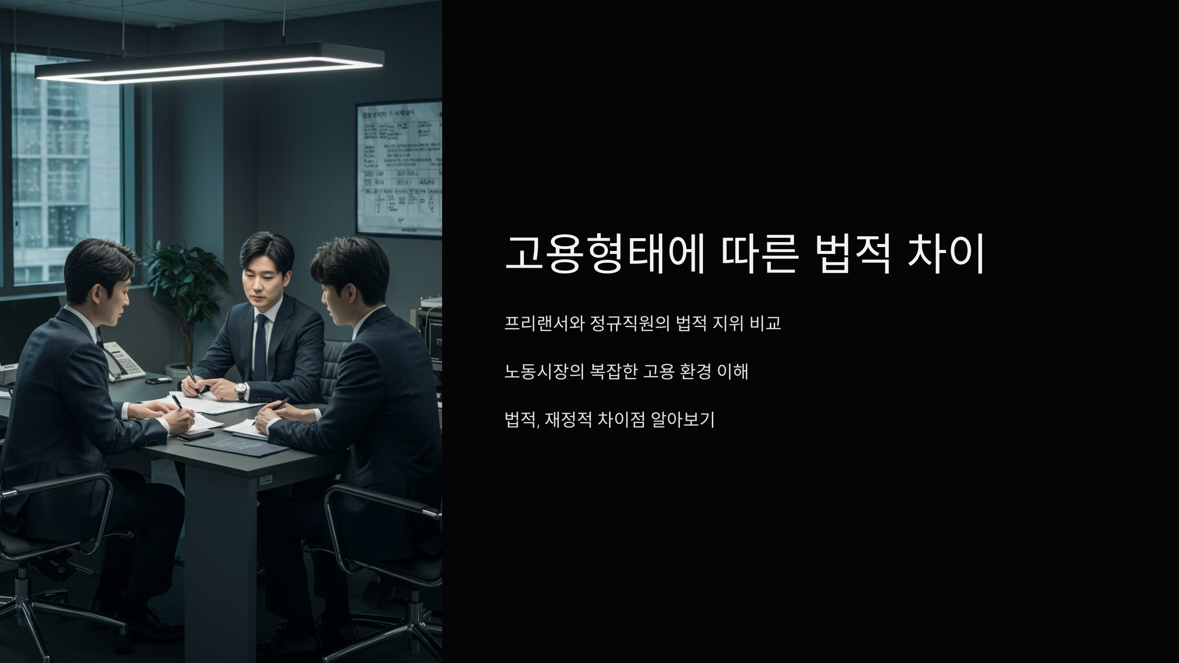 아래 표에서 법적으로 프리랜서와 직원이 어떻게 다르게 적용되는지 비교해볼게요.