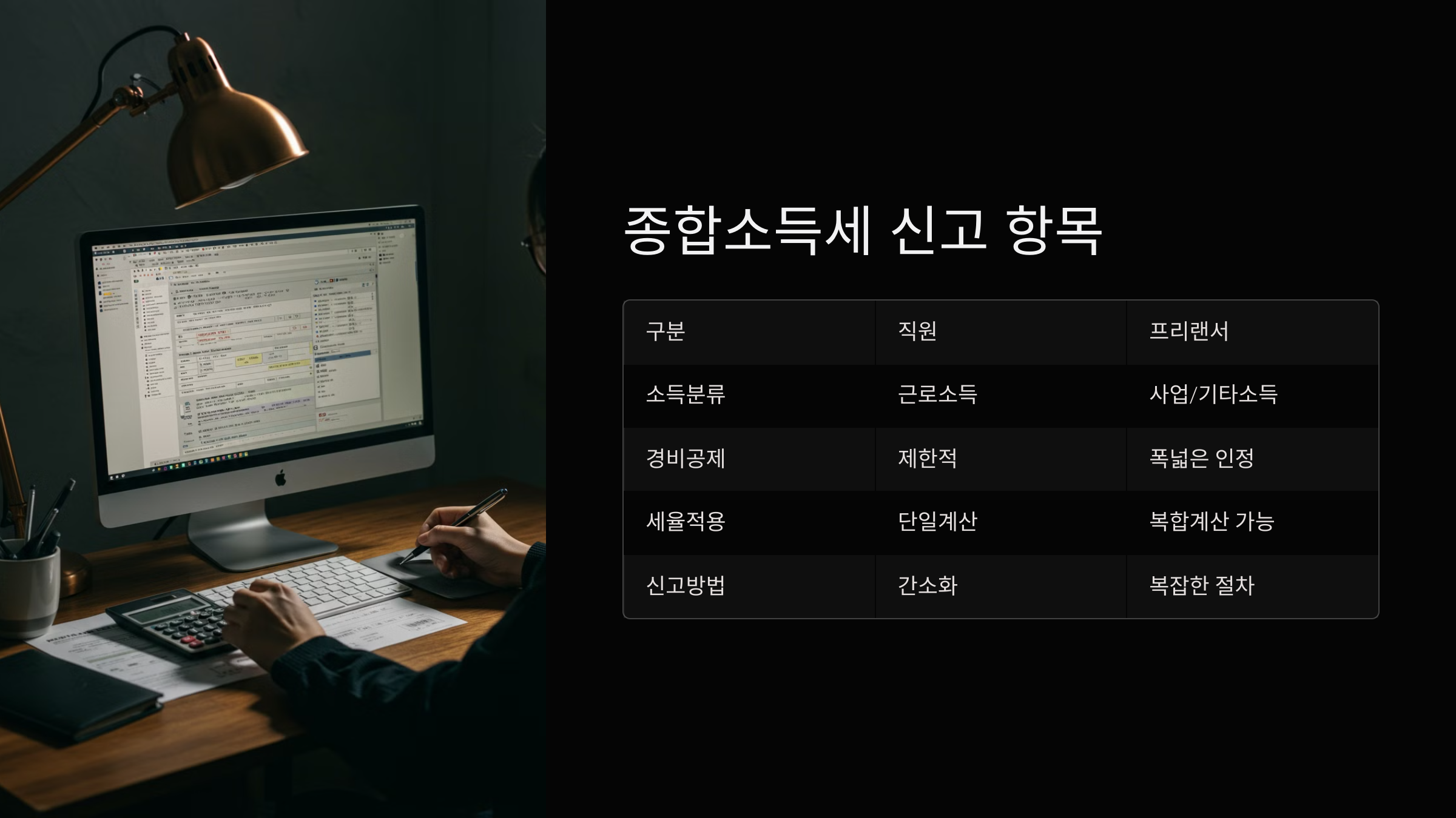 프리랜서로 일하든, 직원으로 등록되든, 1년에 한 번 5월에 종합소득세를 신고해야 해요. 하지만 두 고용 형태에 따라 신고 방법도, 준비 서류도, 공제 항목도 다르게 적용돼요.
