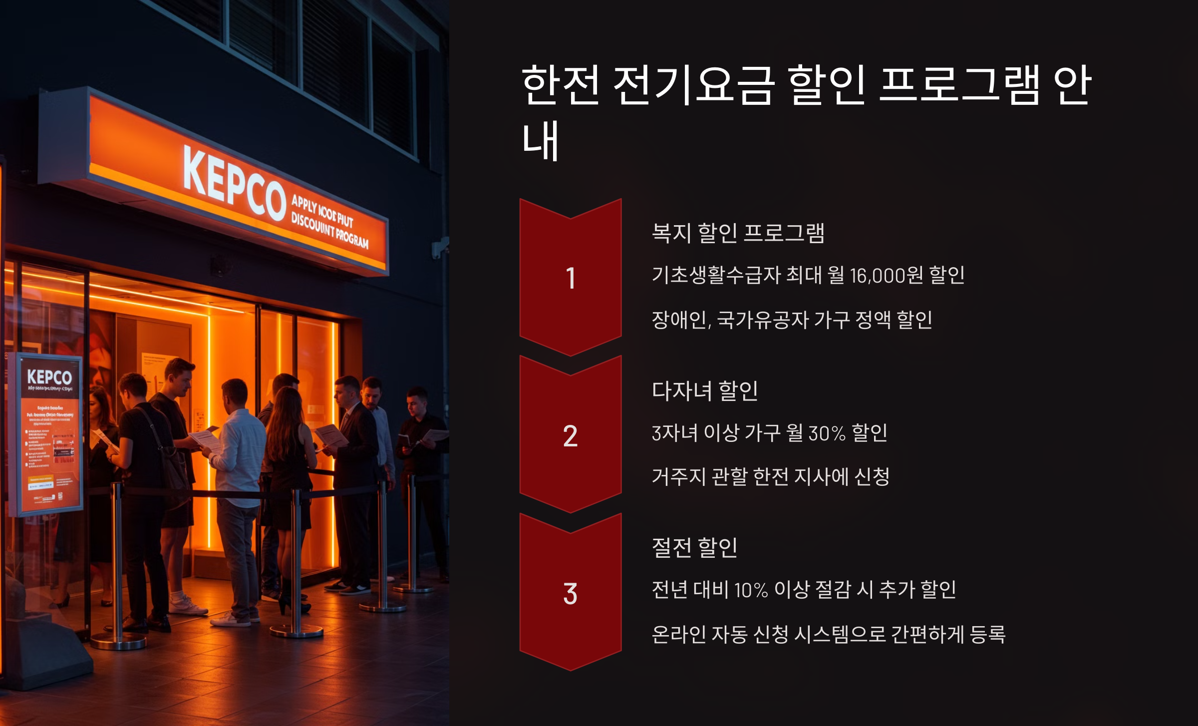 한국전력공사(한전)에서는 다양한 전기요금 할인 프로그램을 운영하고 있어요. 하지만 신청하지 않으면 할인 혜택을 받을 수 없다는 사실! ⚡