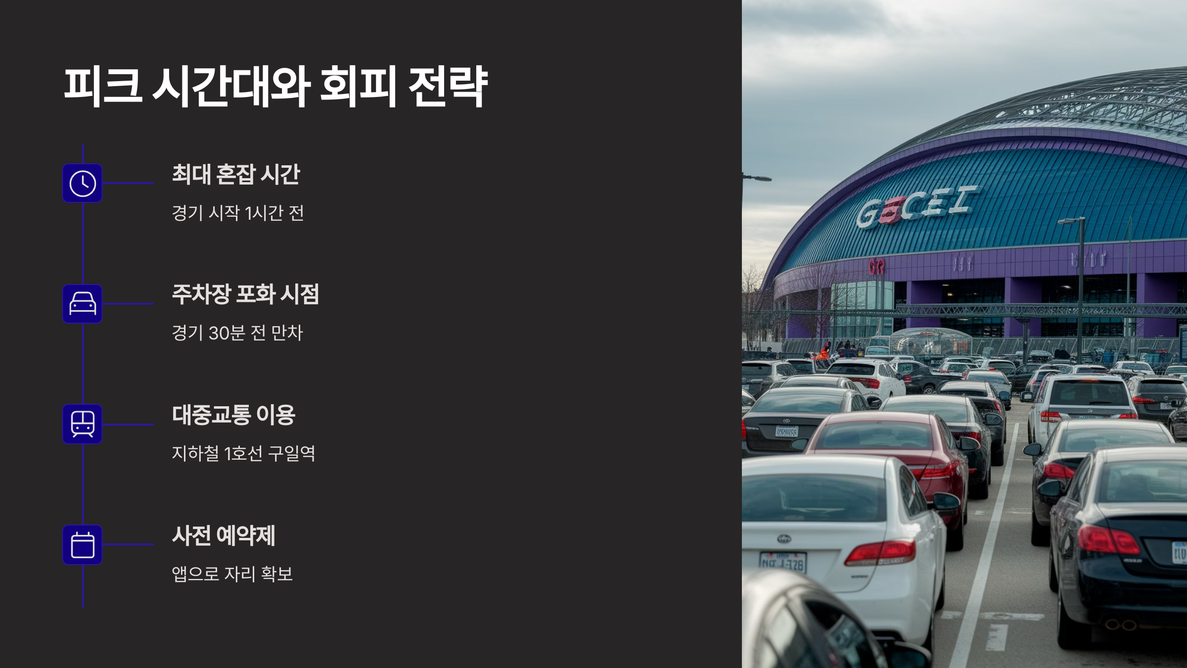 내가 생각했을 때, 행사 당일 고척돔 내부 주차장은 '도박'이고, 이렇게 외부 주차장을 **플랜B로 잡아두는 게 진짜 스마트해요.**