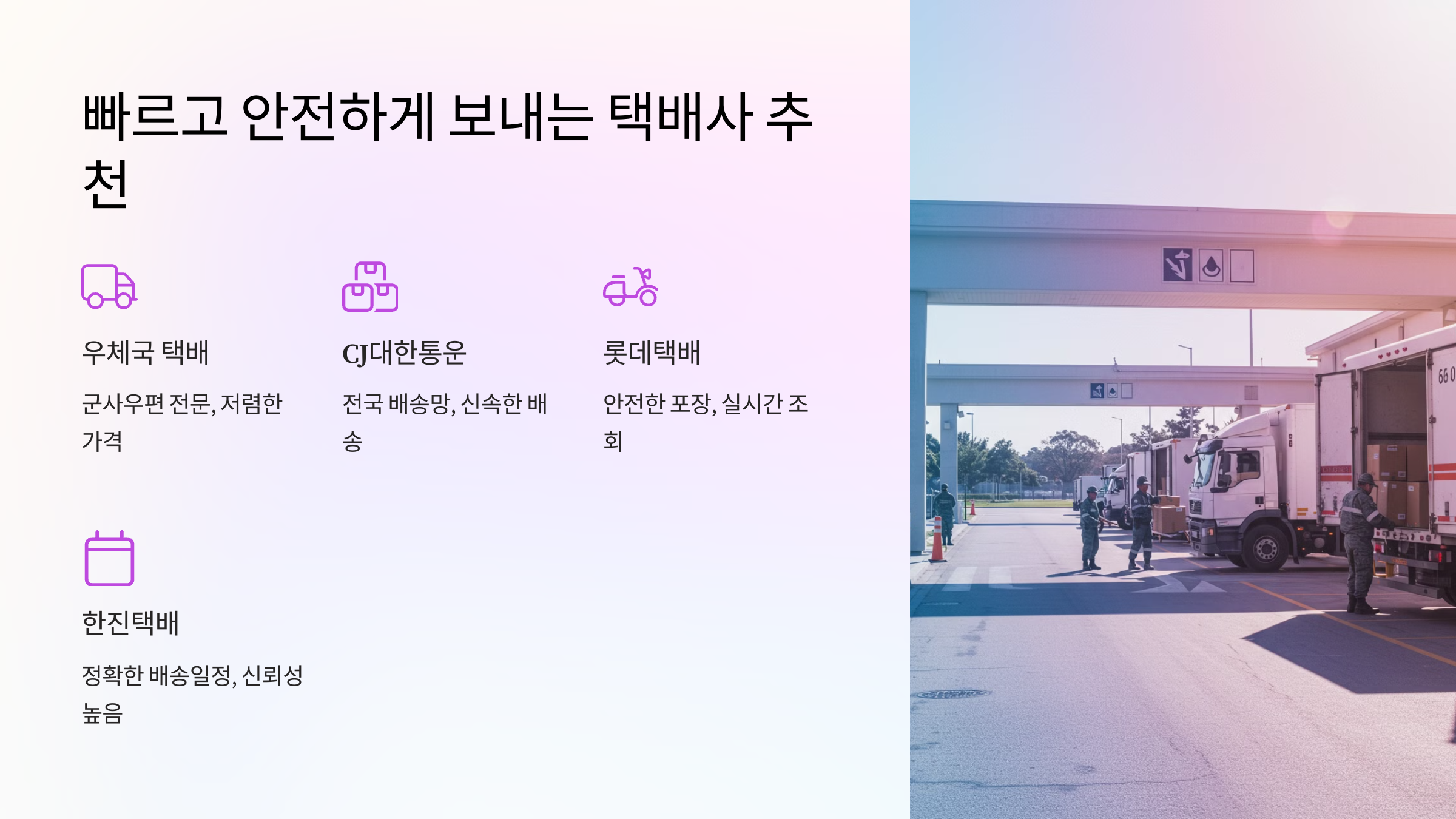 군부대로 택배를 보낼 때는 일반적인 택배보다 배송 과정이 조금 더 까다로울 수 있어요. 📦 부대마다 보안 검사가 철저하기 때문에, 신뢰할 수 있는 택배사를 이용하는 것이 중요해요.