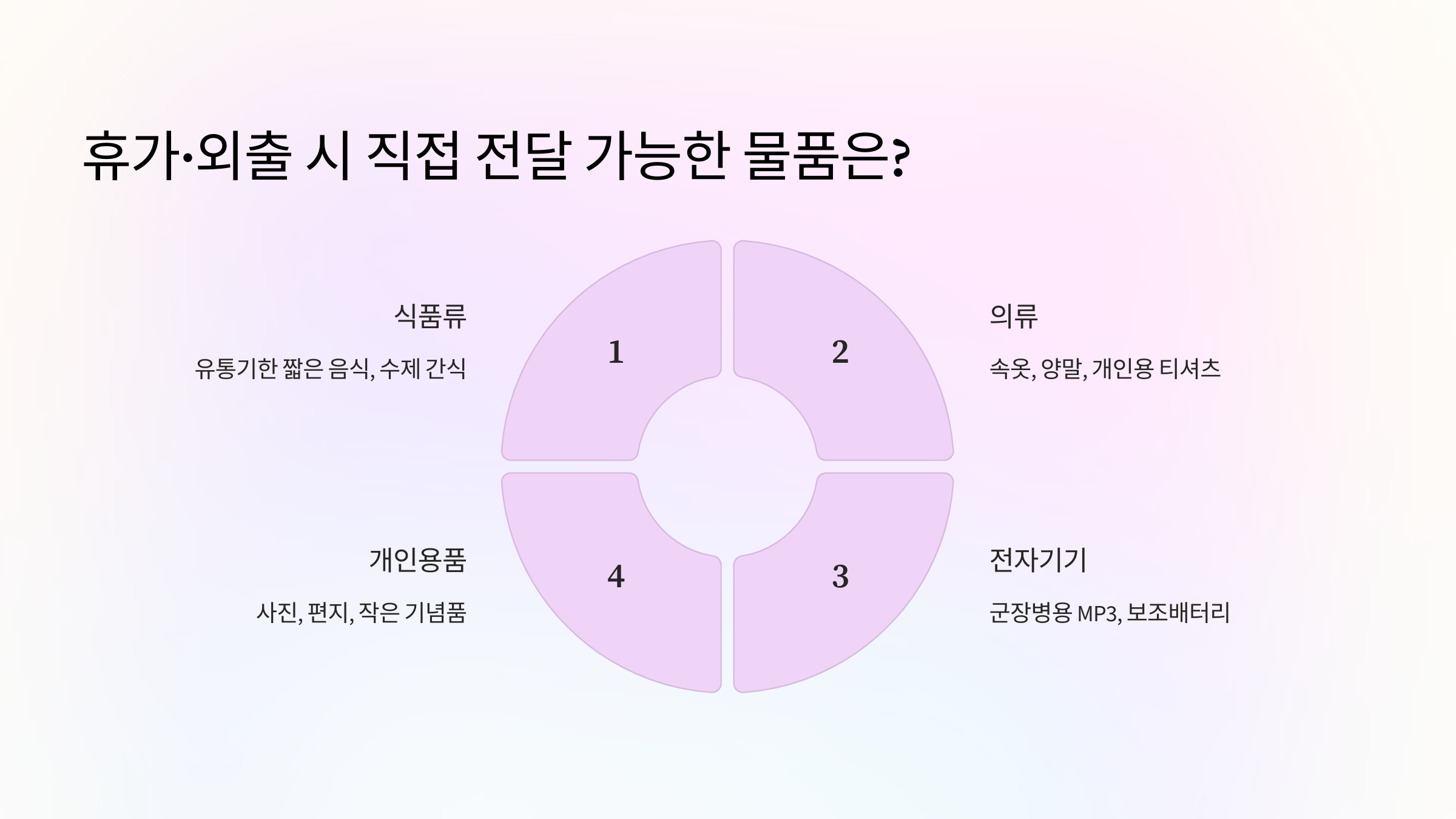 휴가·외출 시 직접 전달 가능한 물품은? 🎒