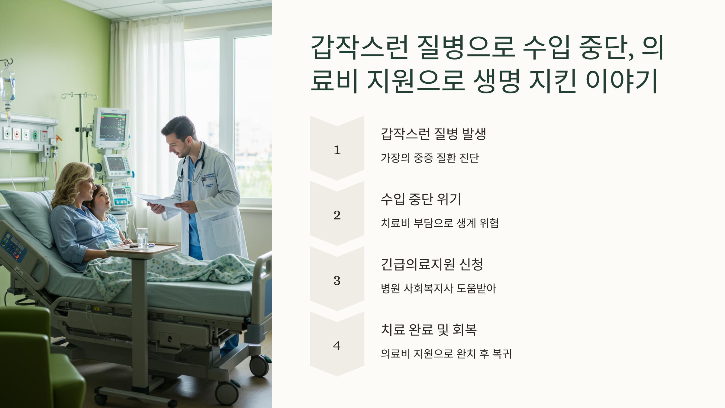 ⚕️ 갑작스런 질병으로 수입 중단, 의료비 지원으로 생명 지킨 이야기