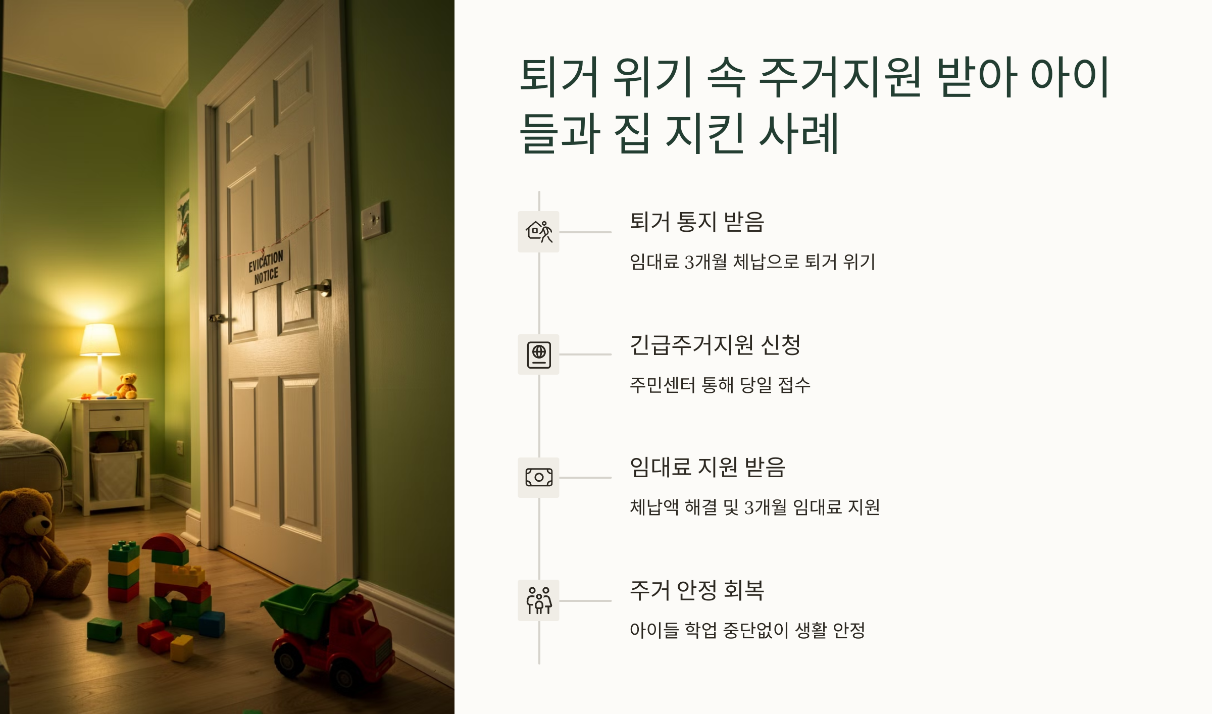 🏠 퇴거 위기 속 주거지원 받아 아이들과 집 지킨 사례