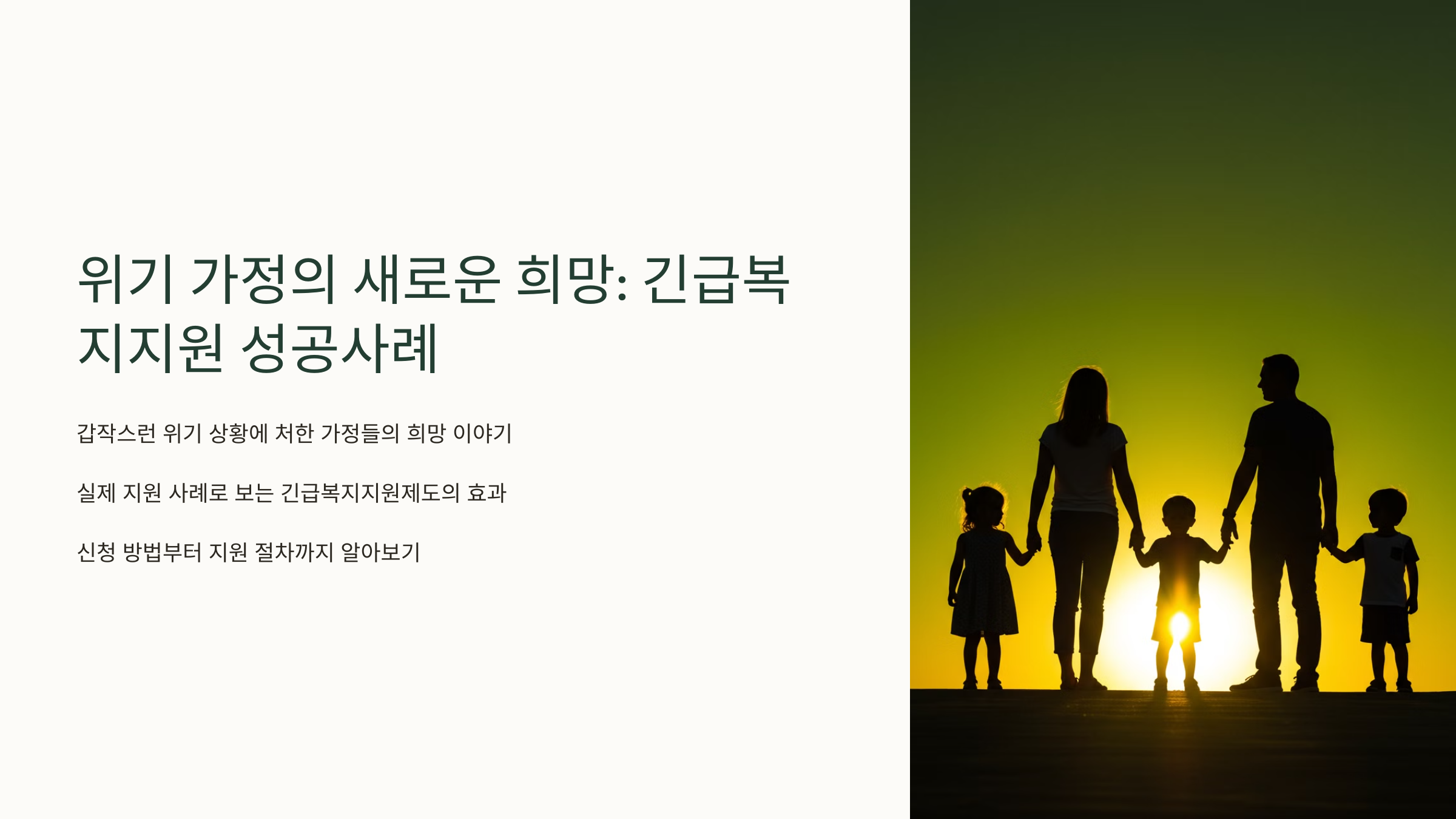 이럴 때 정부의 긴급복지지원제도는 단지 돈을 주는 것 이상의 의미를 가지기도 해요. 정말 필요한 순간에 삶의 방향을 다시 세울 수 있는 희망이 되기도 하죠.