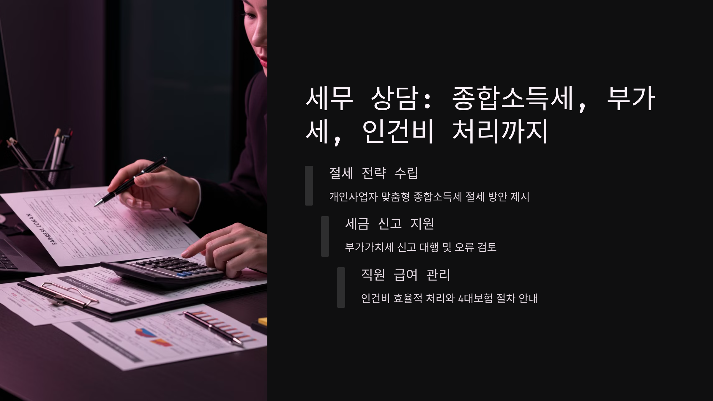 3. 세무 상담: 종합소득세, 부가세, 인건비 처리까지