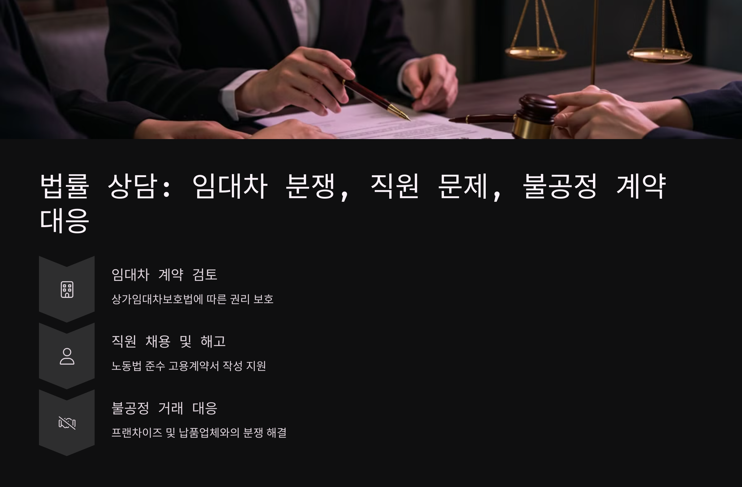 4. 법률 상담: 임대차 분쟁, 직원 문제, 불공정 계약 대응