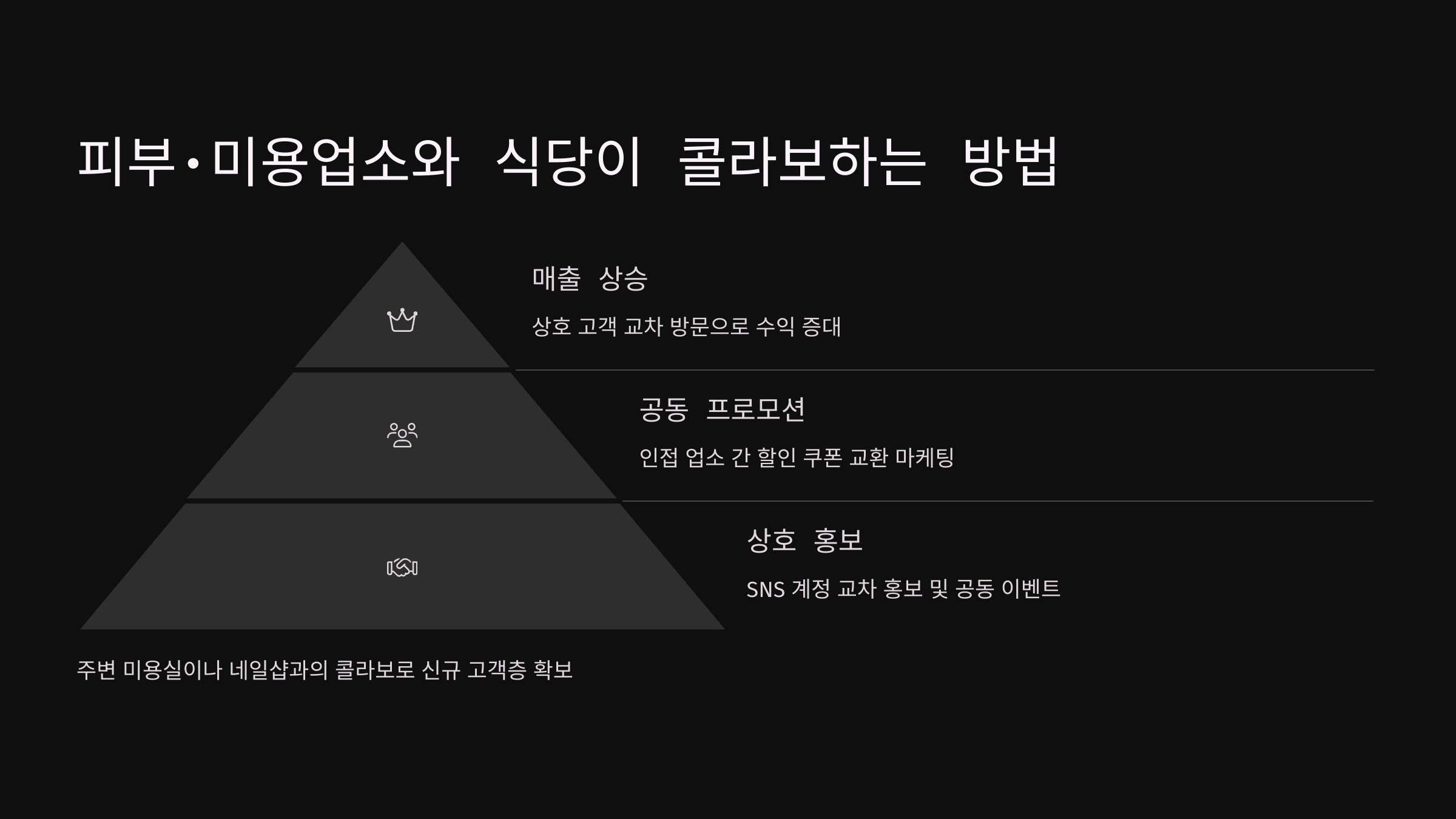 | SNS 콜라보 콘텐츠 | 식당+미용 브랜드 공동 홍보 | ✔ 가능 |