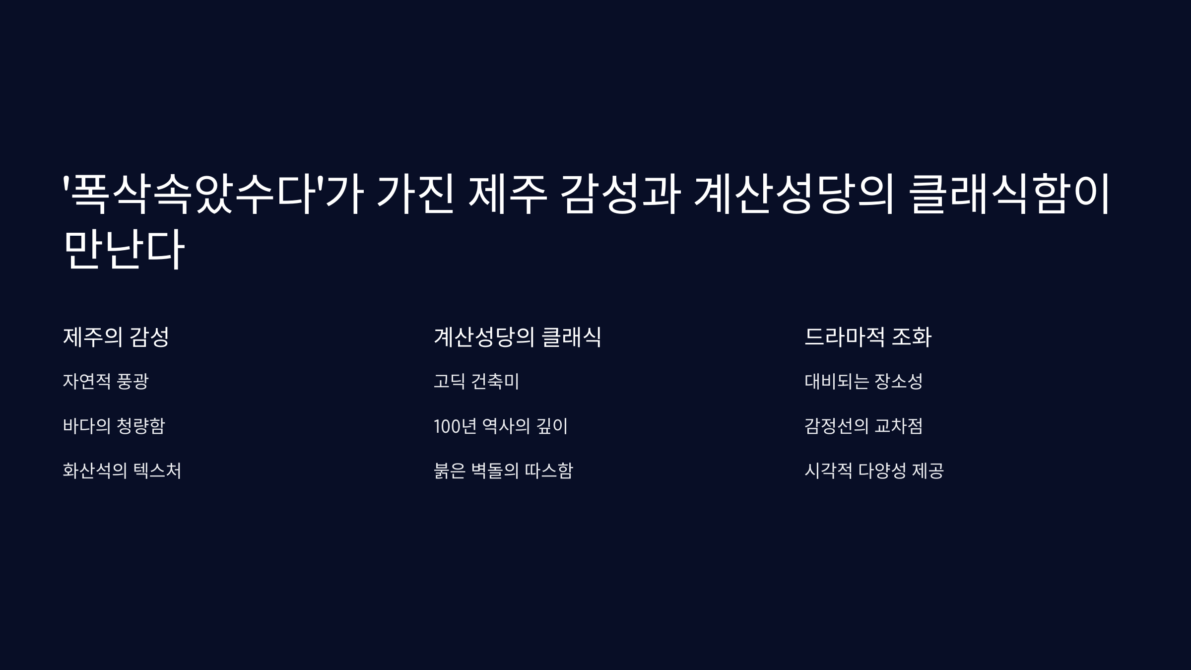 👉 다음: 3. ‘폭삭속았수다’가 가진 제주 감성과 계산성당의 클래식함이 만난다