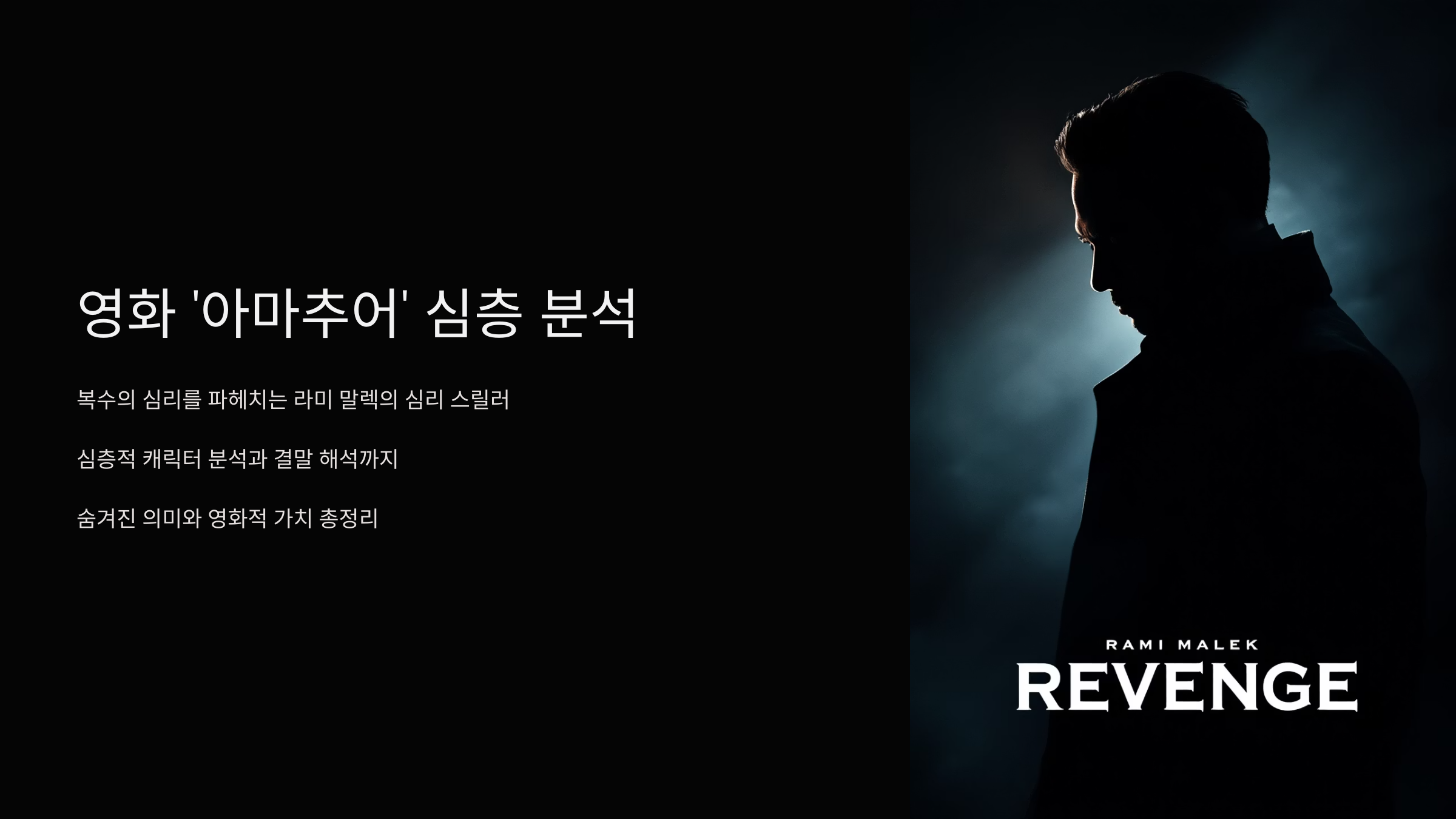 | 아마추어 | 감정 압축 복수자 | 절제, 시선, 내면의 긴장감 |