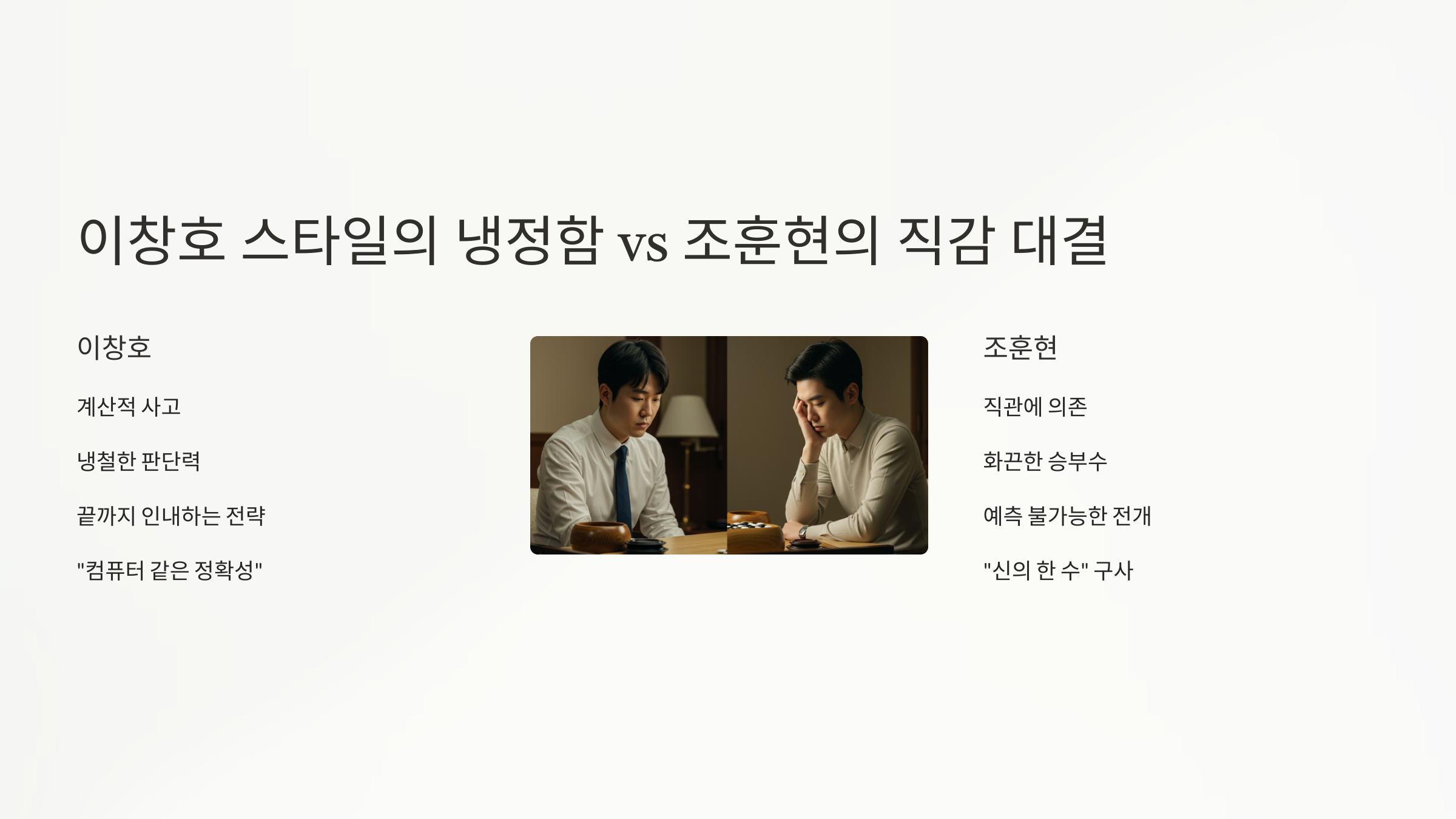 🧠 이창호 스타일의 냉정함 vs 조훈현의 직감 대결
