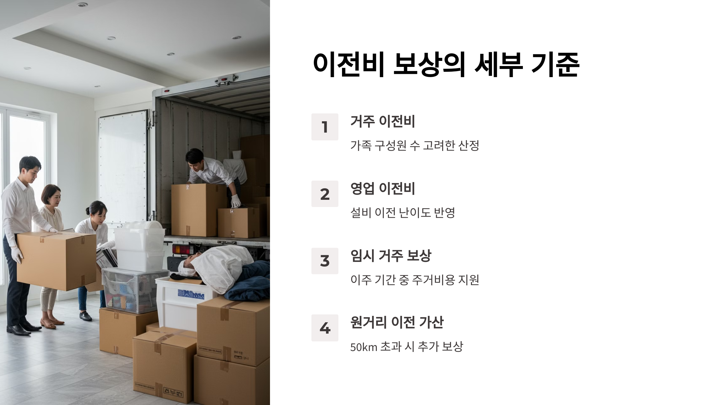 📦 이전비 보상 – 이전에 필요한 운송·설치비 등 실비 기준 지급