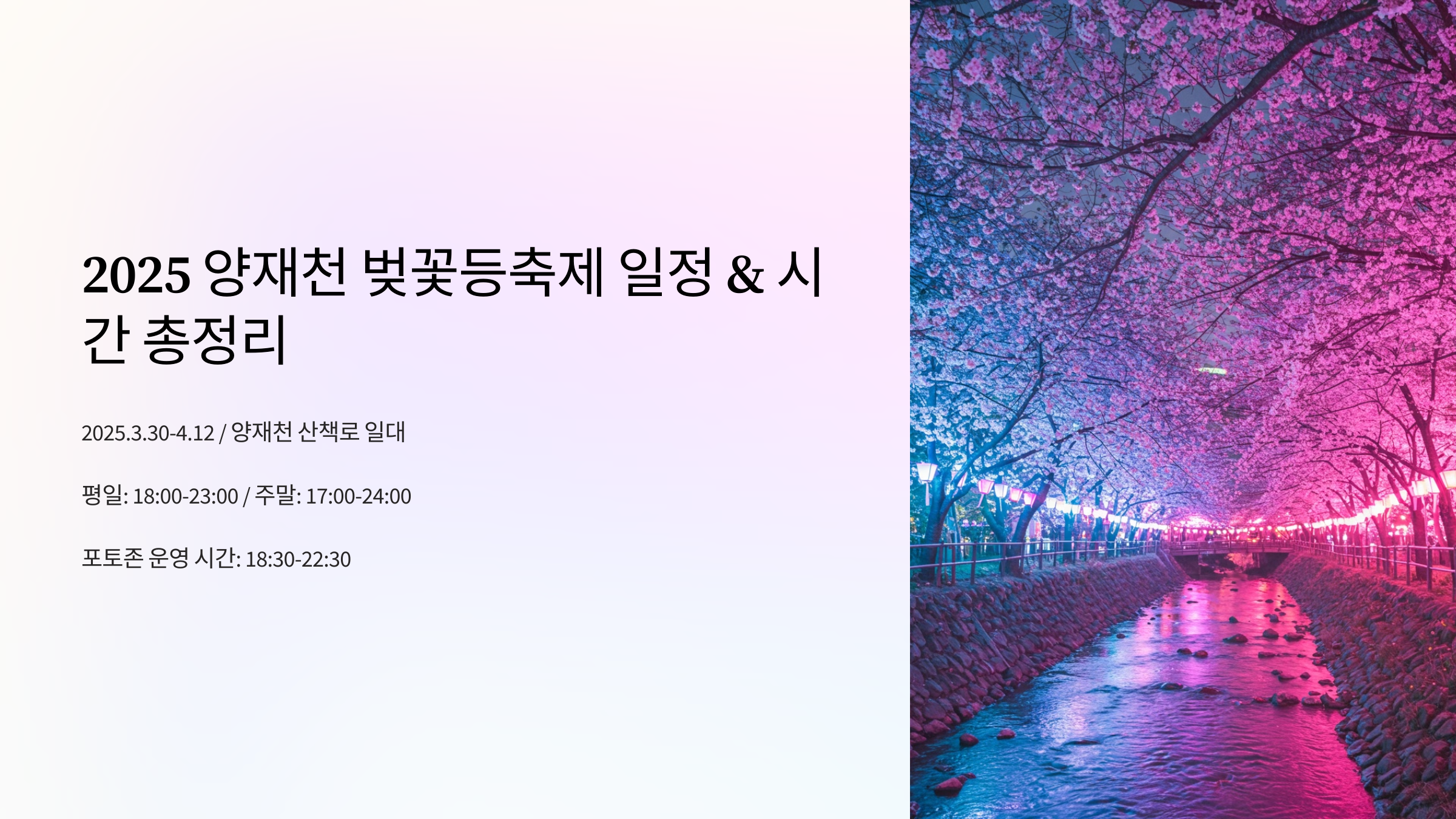 1. 2025 양재천 벚꽃등축제 일정 & 시간 총정리