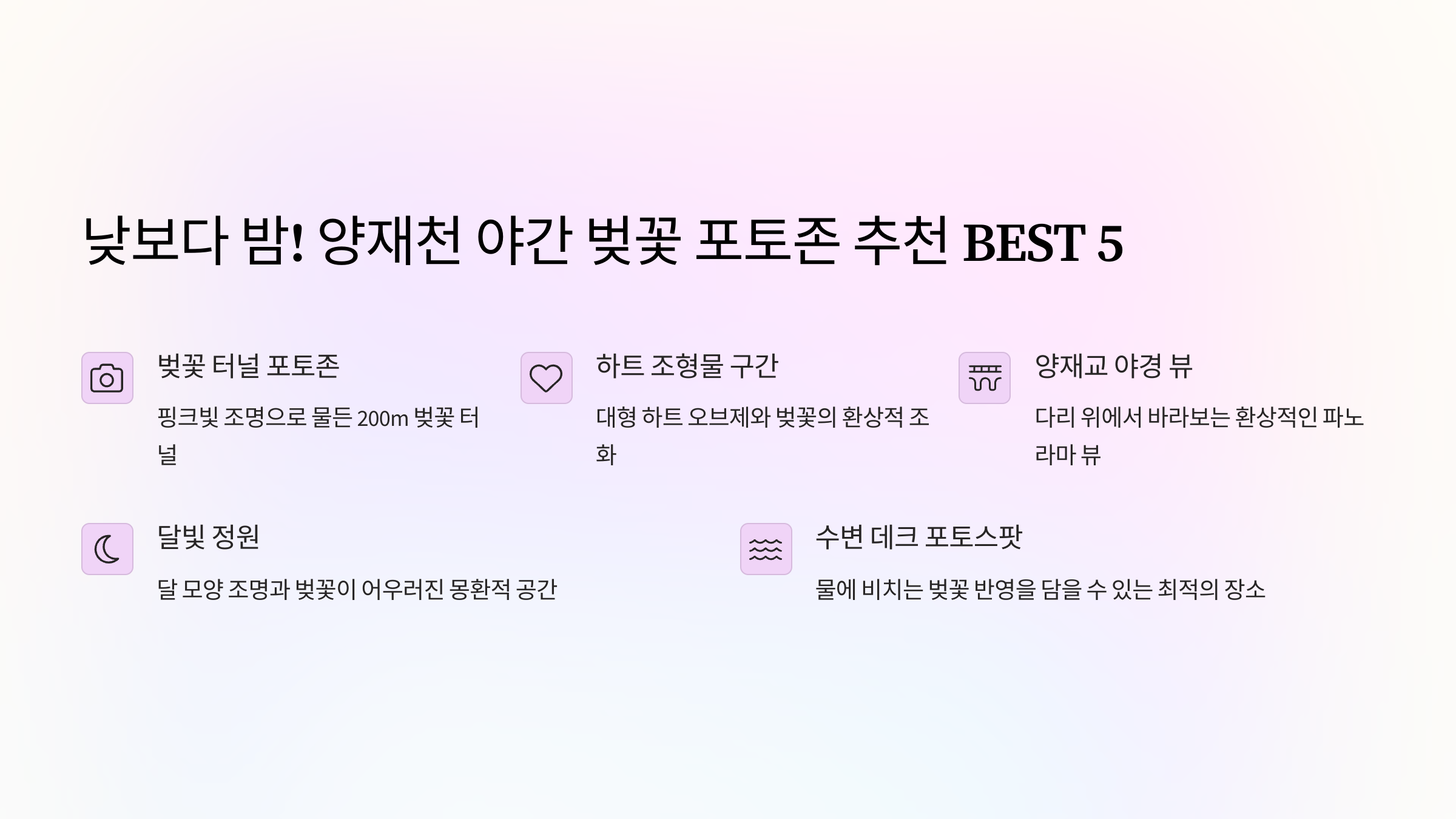 👉 다음: 2. 낮보다 밤! 양재천 야간 벚꽃 포토존 추천 BEST 5