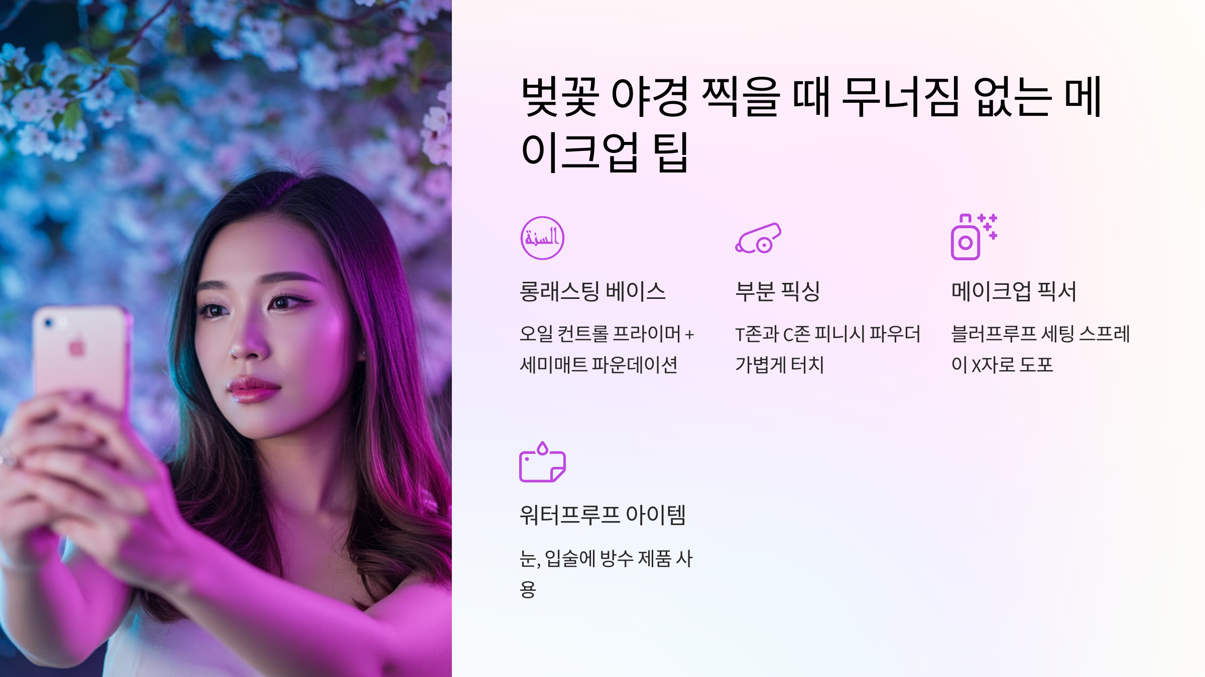 6. 벚꽃 야경 찍을 때 무너짐 없는 메이크업 팁