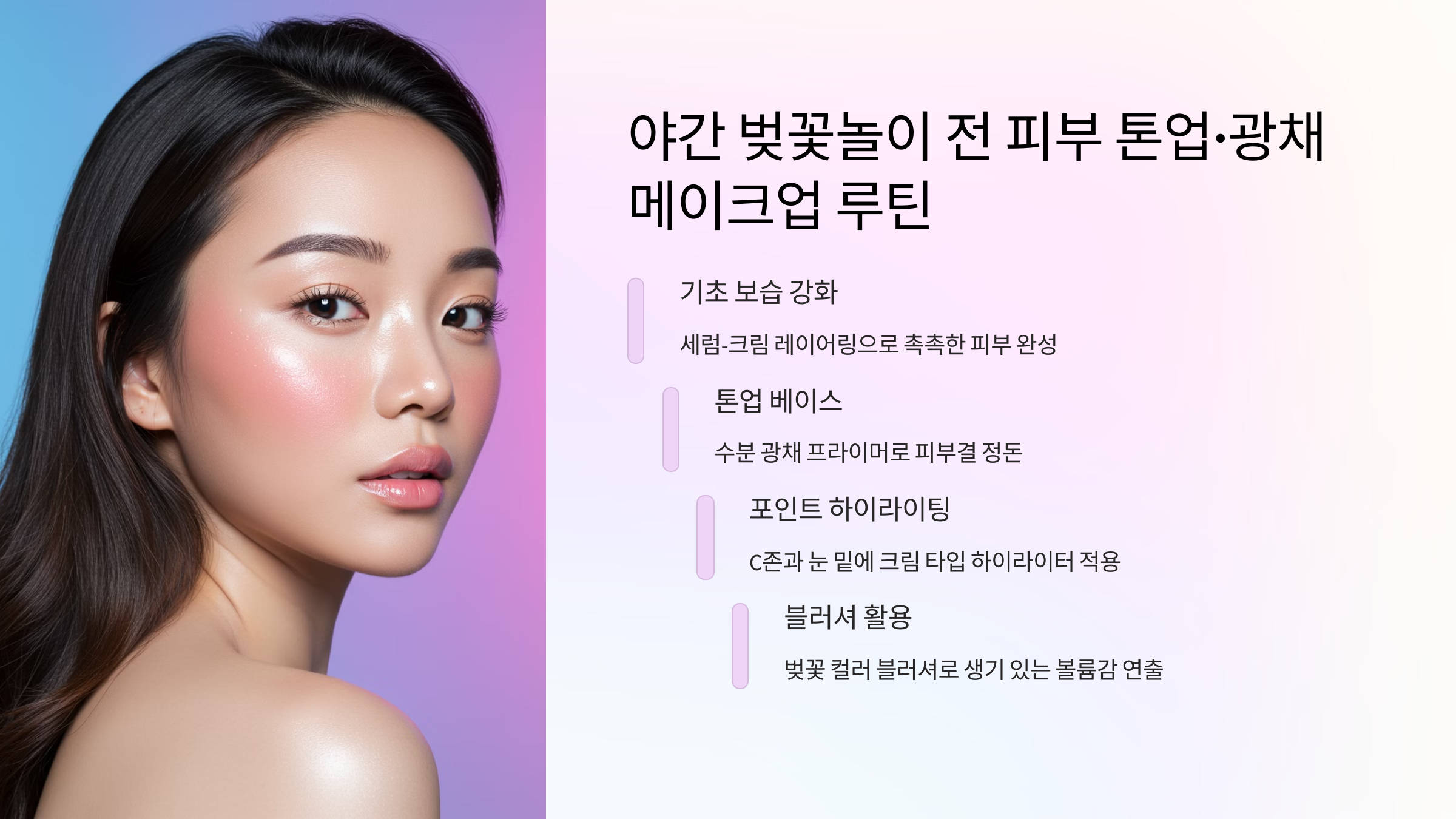 👉 다음: 3. 야간 벚꽃놀이 전 피부 톤업·광채 메이크업 루틴