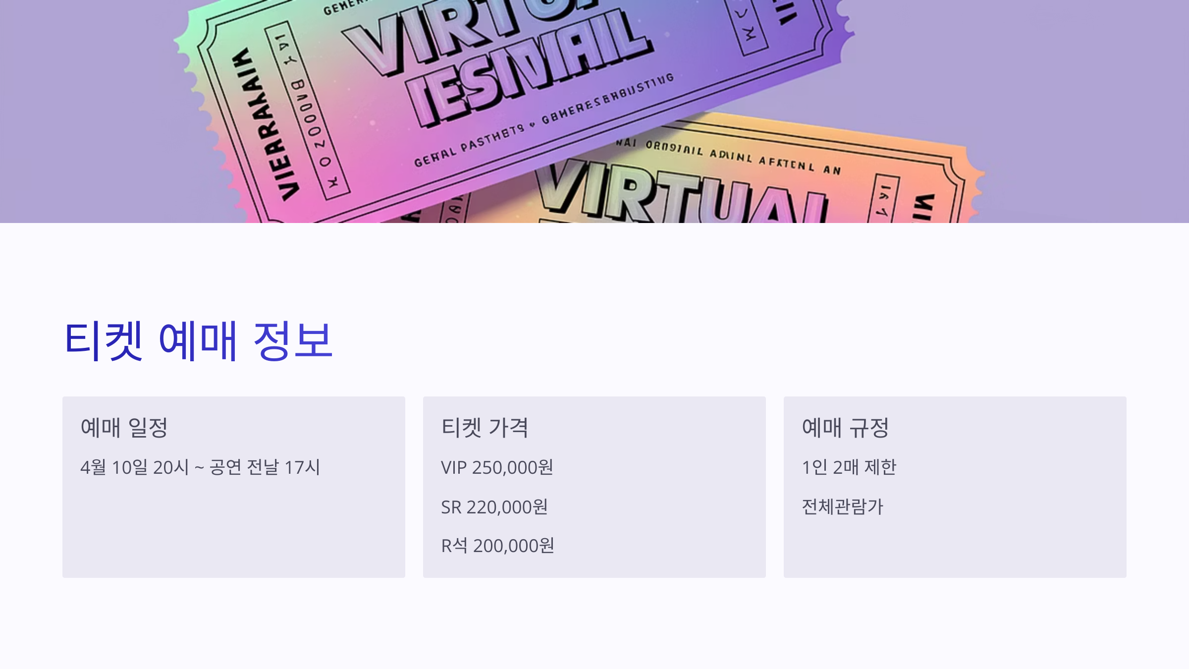 | VIP 패키지 | 굿즈+우선입장+좋은 자리 세트 | 고가, 빠른 매진 예상 |