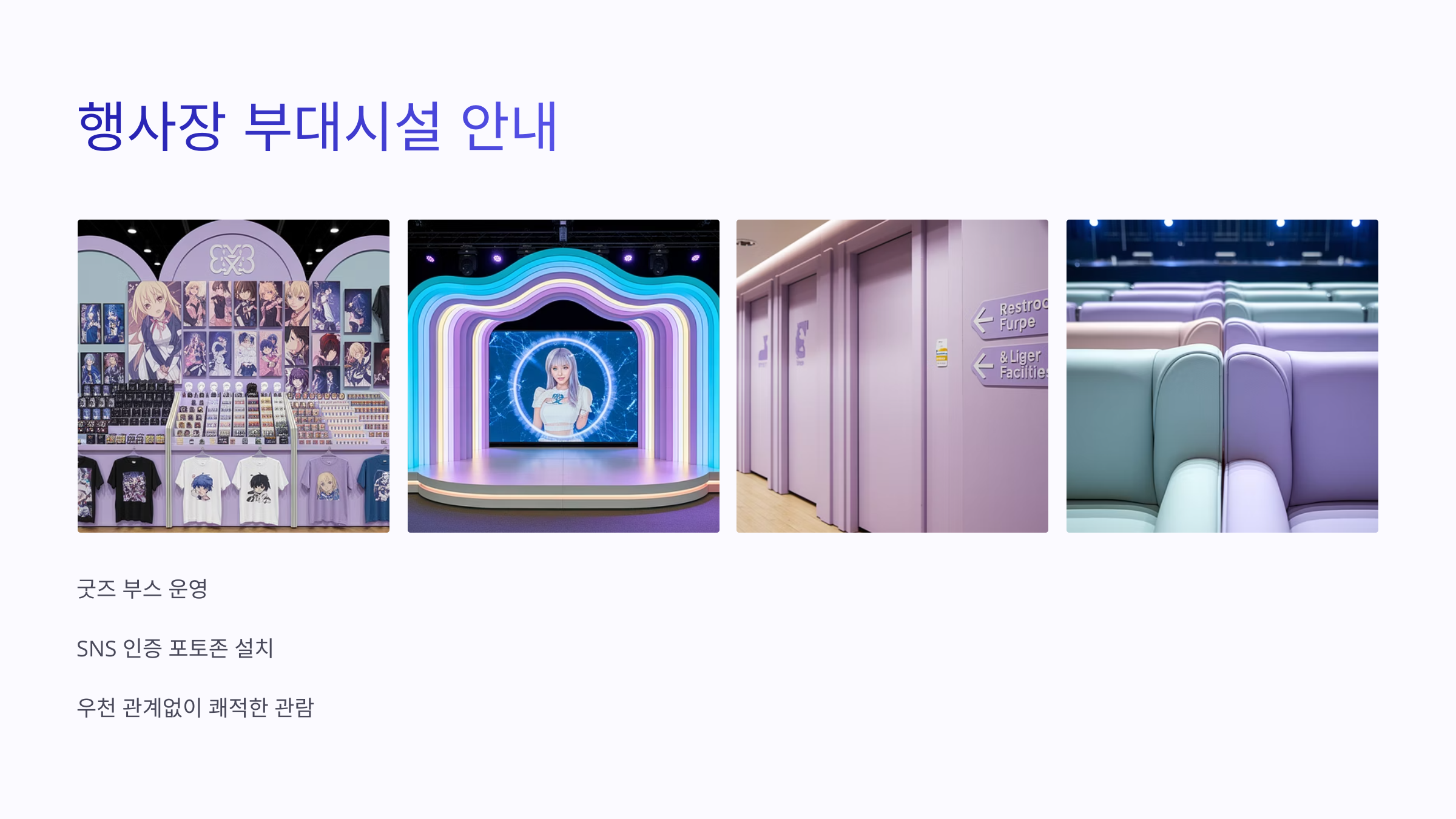 올해는 단순한 ‘팬을 위한 행사’를 넘어서 “캐릭터 문화 페어 + 음향·조명 연출 강화”로 실제 콘서트에 준하는 퀄리티를 예고하고 있어요.