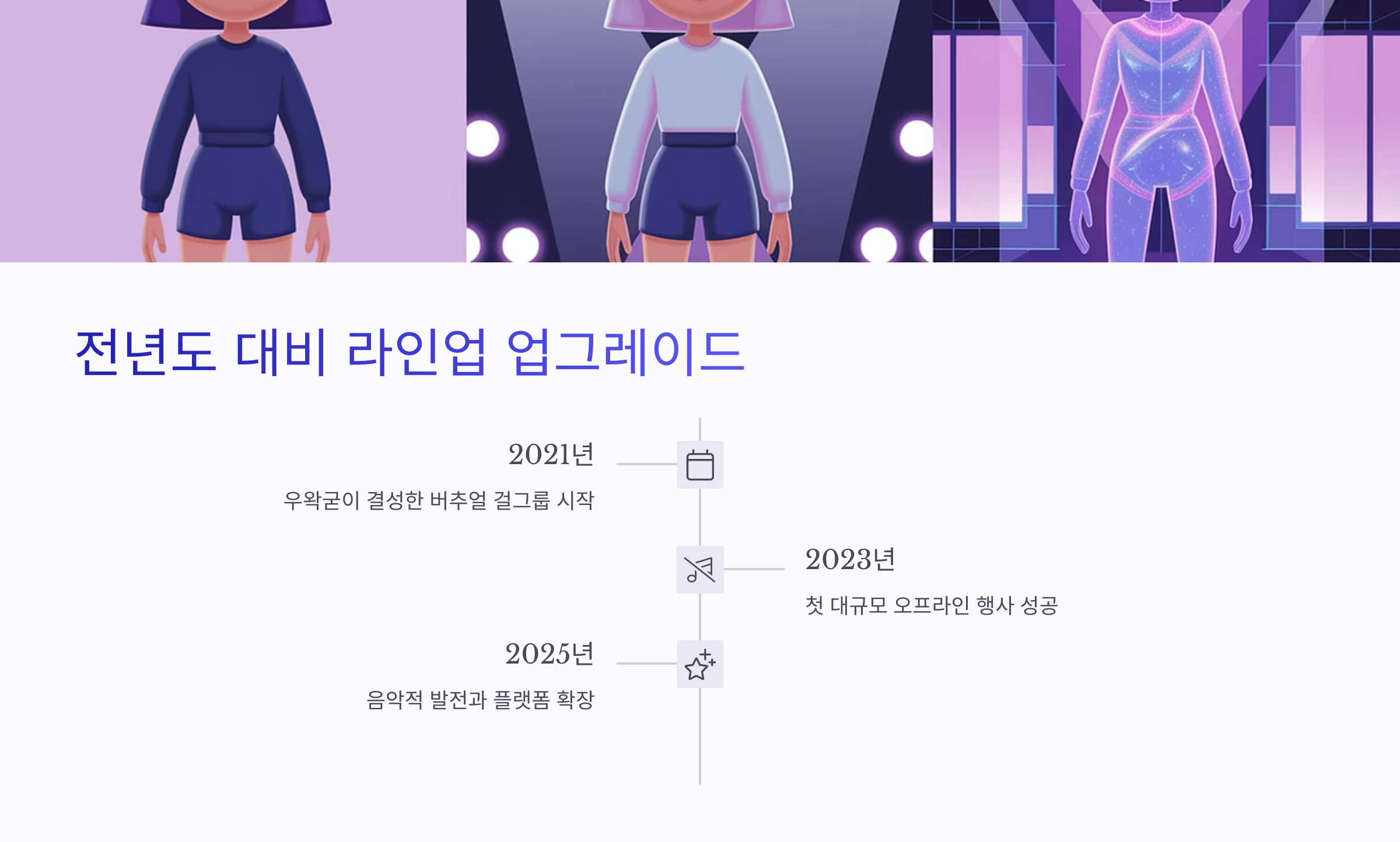 | 진행 방식 | 팬미팅 중심 전시 | 3D 콘서트 + 전시 + 부스 |