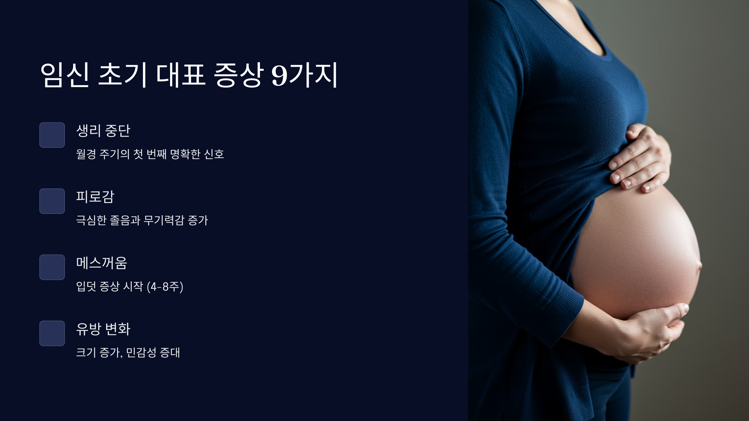 다음은 임신 초기 실제로 자주 나타나는 증상 9가지를 정리해드릴게요. 처음이라 낯설어도, 하나씩 체크하면 빠르게 알아차릴 수 있어요!