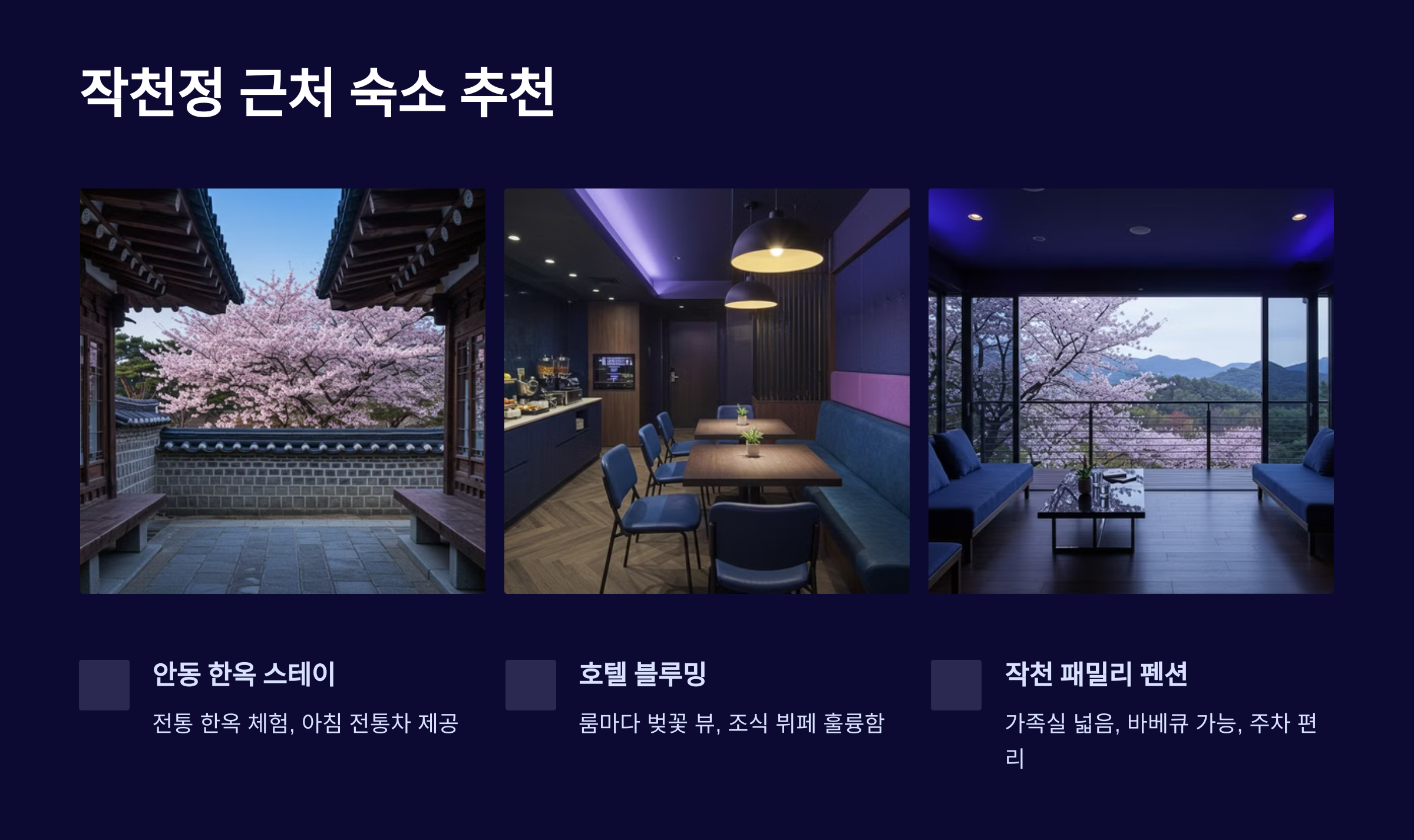 특히 벚꽃 시즌엔 인근 숙소들도 야경 감상, 조식 제공, 감성 포토존까지 제대로 준비되어 있어요. 뷰 좋고 조식까지 챙길 수 있는 숙소 TOP3를 소개할게요!