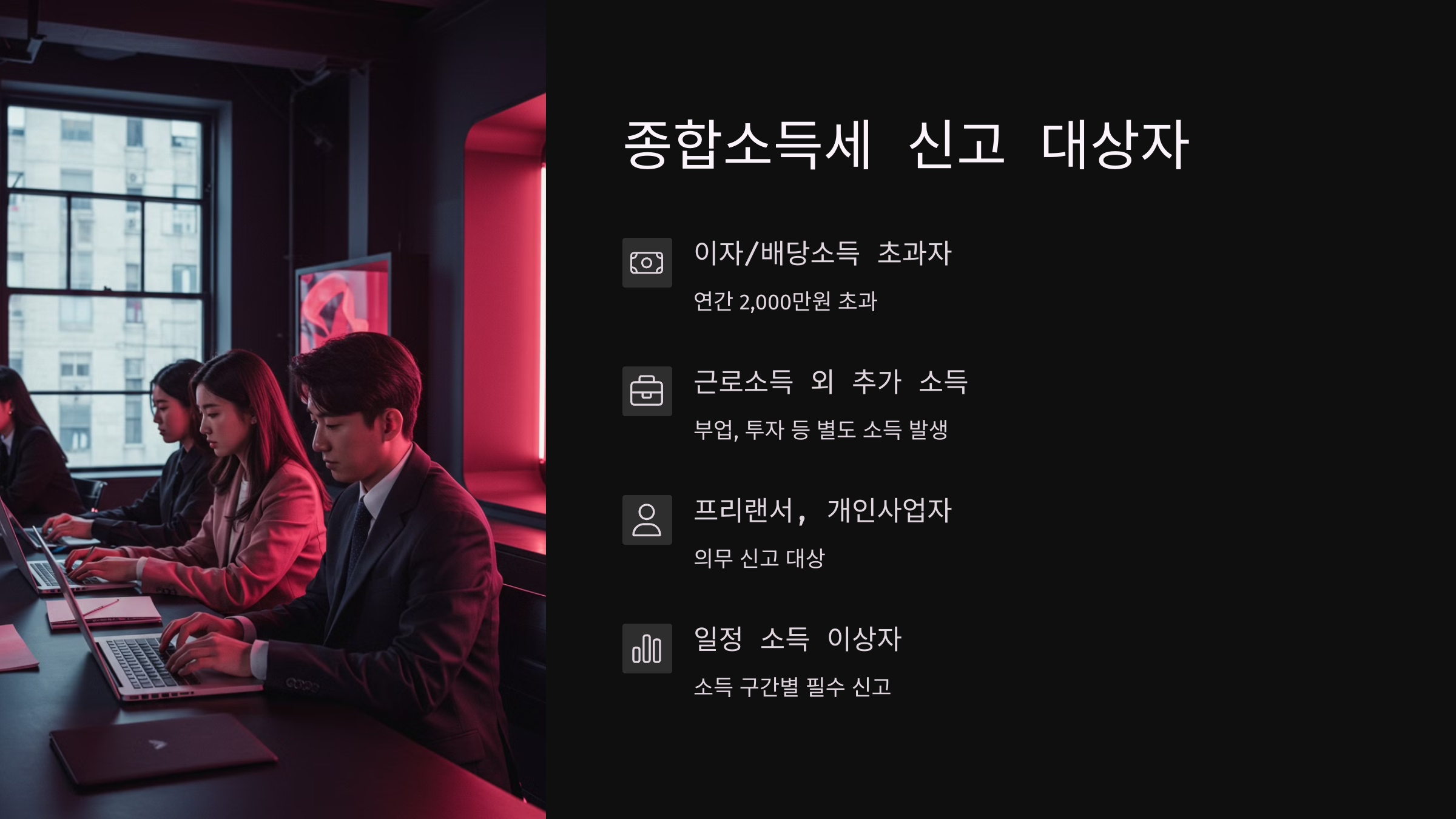 쉽게 말해, 다양한 소득이 있는 사람들의 '세금 정산' 과정이라고 보면 돼요.