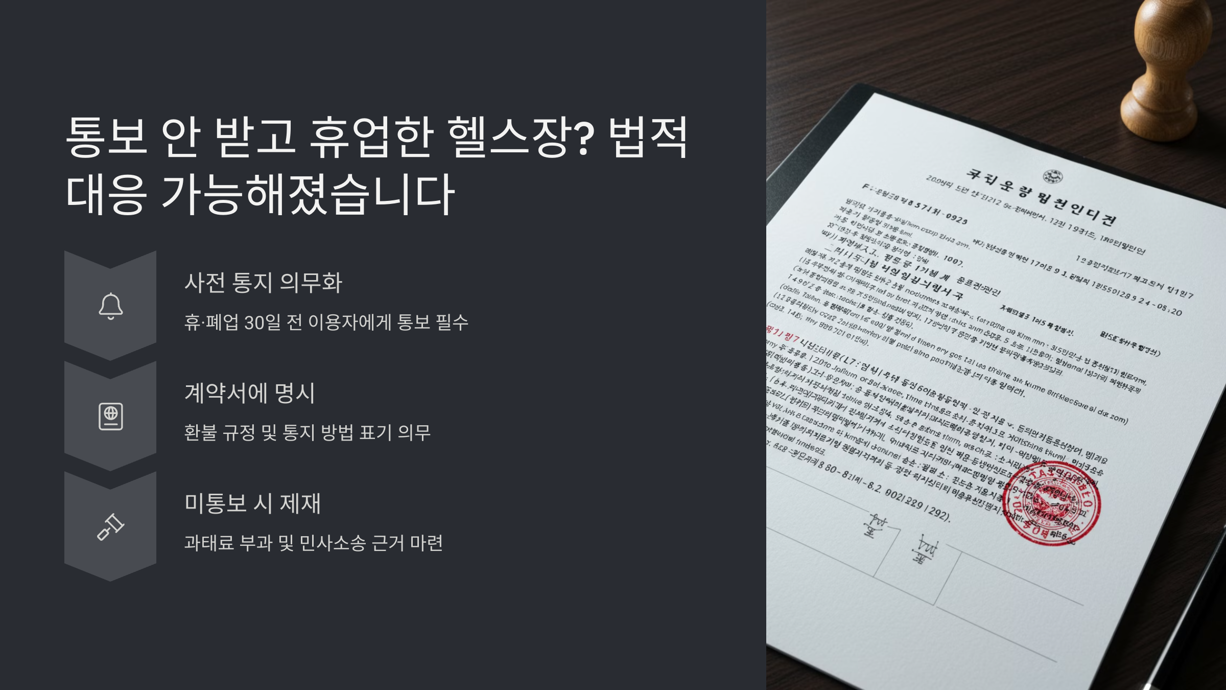 📢 통보 안 받고 휴업한 헬스장? 법적 대응 가능해졌습니다