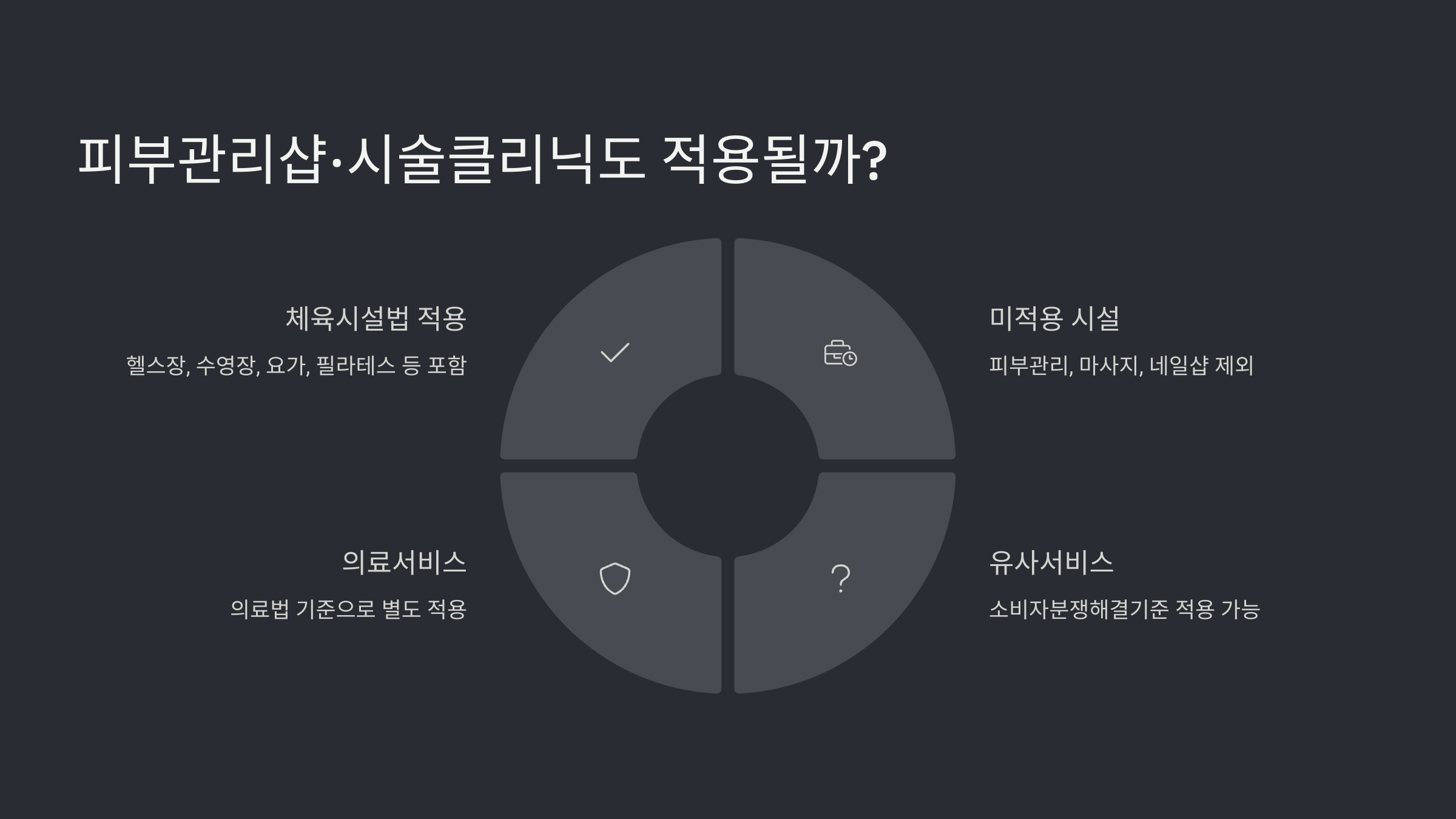 | 적용 대상 | 헬스장, 필라테스, 피부관리샵 등 포함 |