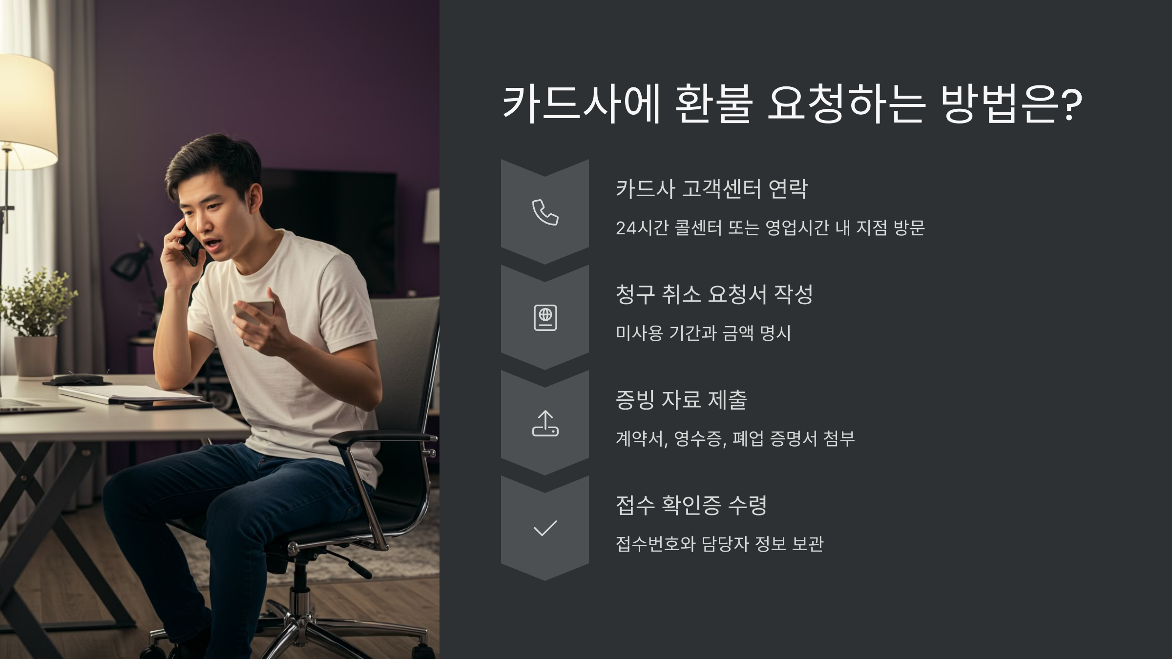 이제 증빙 자료를 모았다면, 본격적으로 카드사에 환불 요청을 해야 해요!