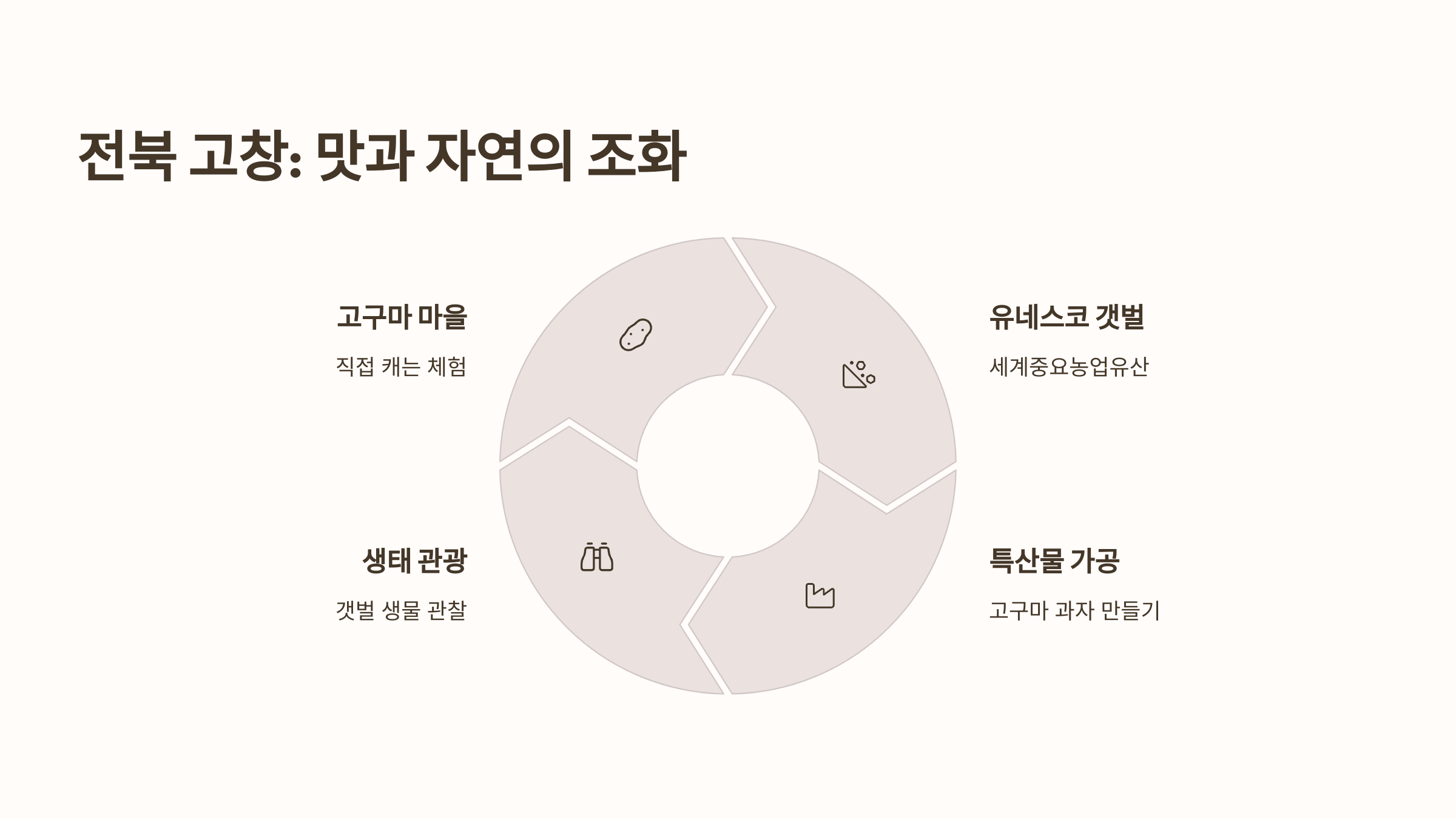 | 고창 고구마 마을 | 달콤한 고구마 음식 체험 가능 |