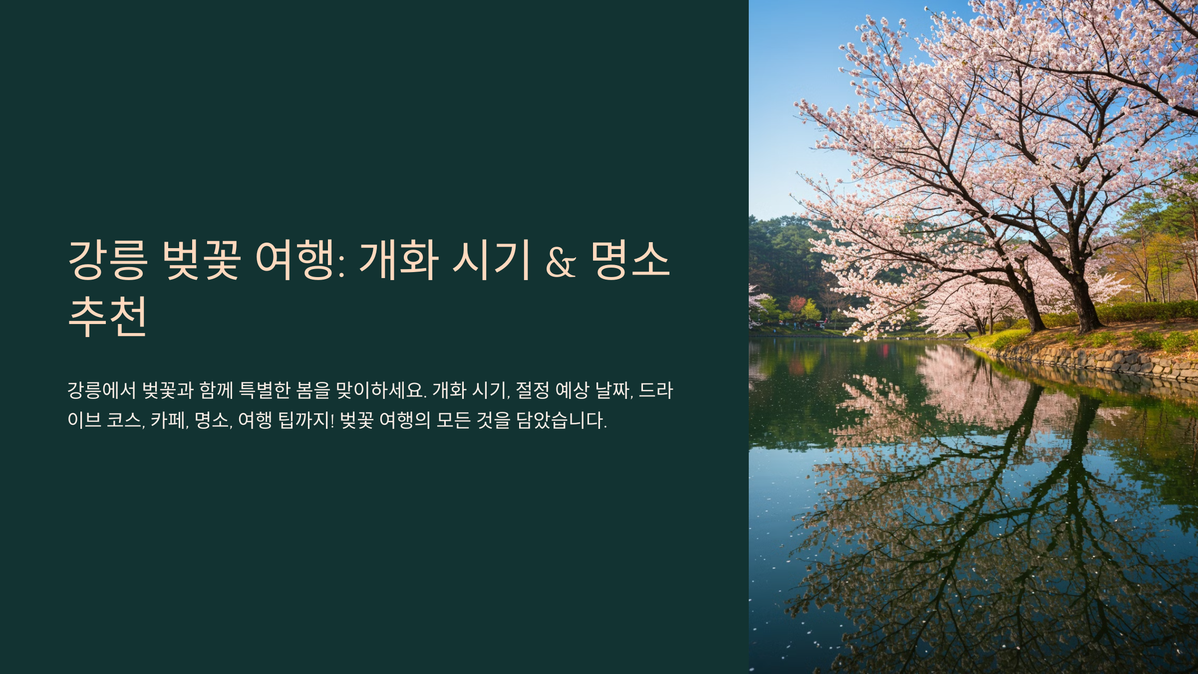 이번 글에서는 강릉 벚꽃 개화 시기, 드라이브 코스, 바다뷰 카페, 인생샷 명소까지 완벽한 봄 여행 가이드를 준비했어요. 놓치면 1년 기다려야 할 강릉 벚꽃 여행, 지금 바로 떠나보세요! ✅