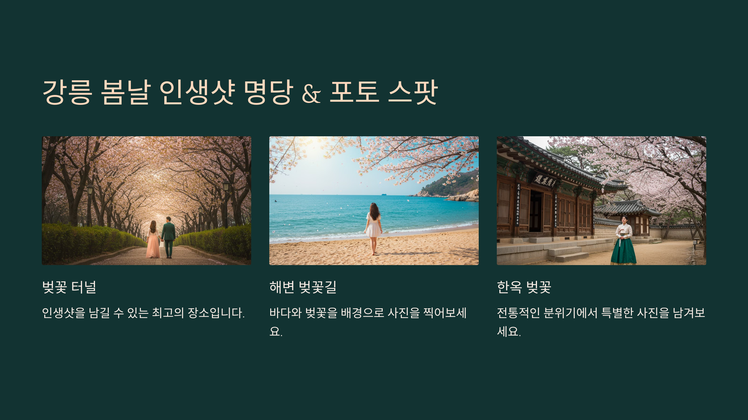 📸 강릉에서 벚꽃과 함께 인생샷을 남길 수 있는 최고의 포토 스팟이 궁금하다면? 다음 섹션에서 강릉의 대표적인 촬영 명소를 소개해 드릴게요! ✅