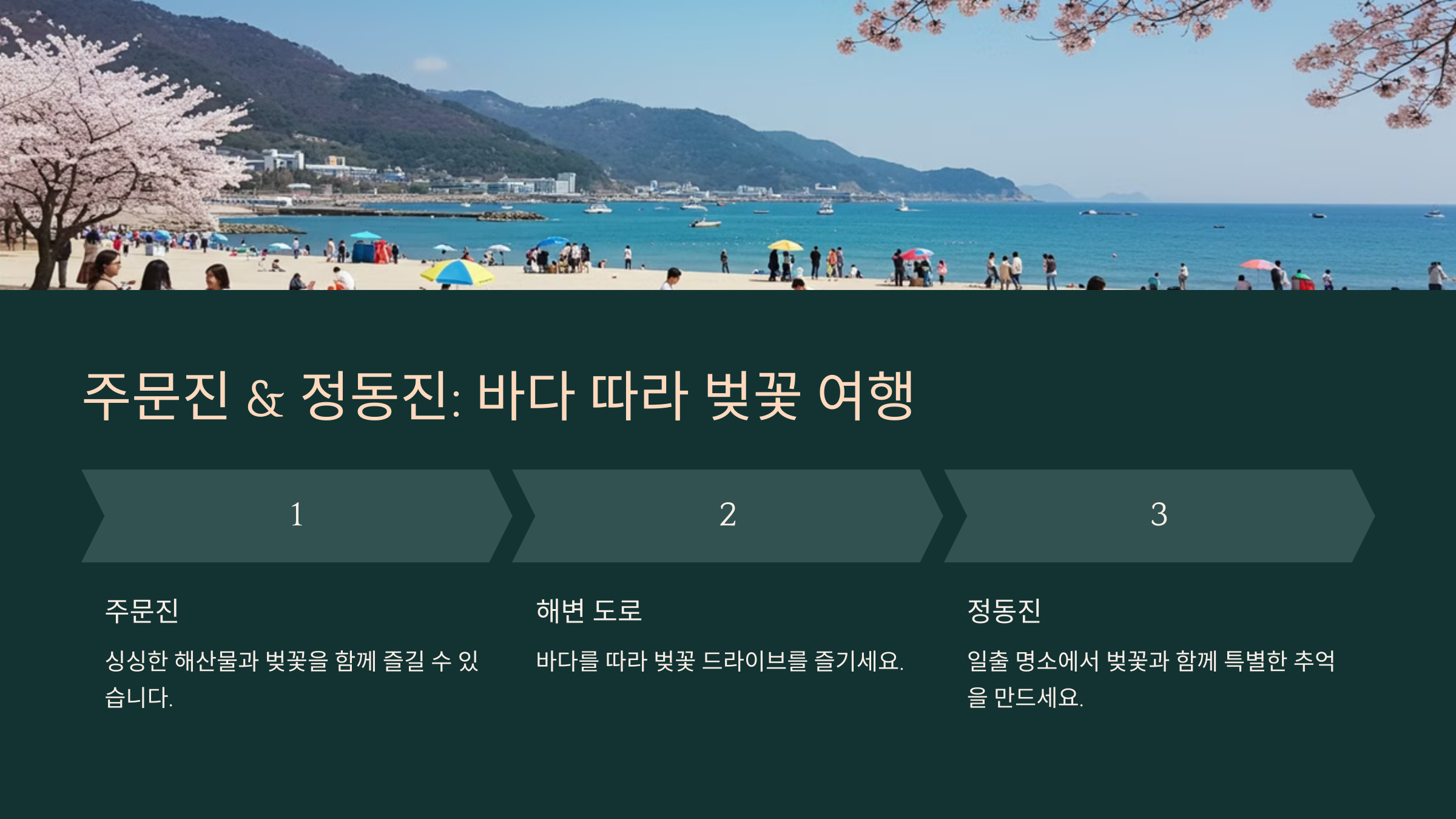 🌊 바다 따라 벚꽃을 감상할 수 있는 주문진 & 정동진이 궁금하다면? 다음 섹션에서 바다 드라이브 코스를 소개해 드릴게요! ✅