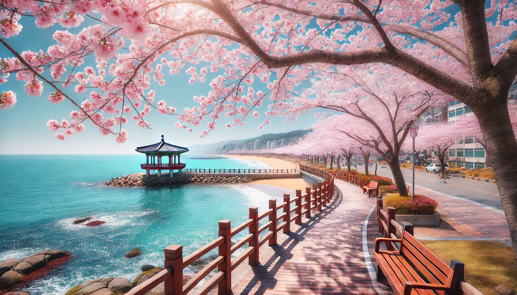 A8. 벚꽃 시즌은 바닷바람이 강할 수 있으니 가벼운 외투를 챙기고, 벚꽃 사진을 예쁘게 담기 위해 광각 렌즈 & 삼각대를 준비하는 것도 좋아요! 📷