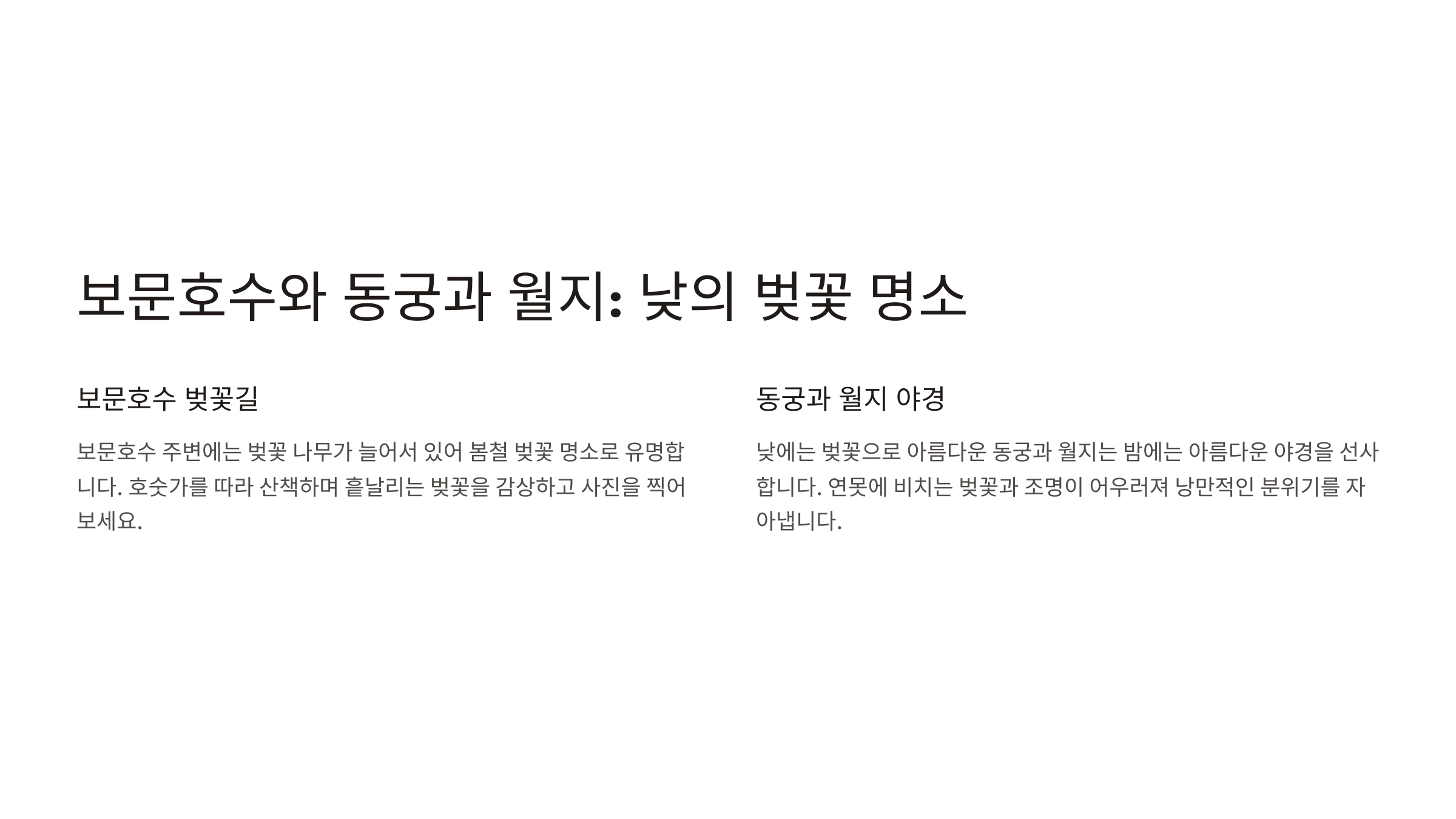 🌿 경주의 대표 벚꽃 명소인 보문호수 & 동궁과 월지가 궁금하다면? 다음 섹션에서 자세히 소개해 드릴게요! ✅