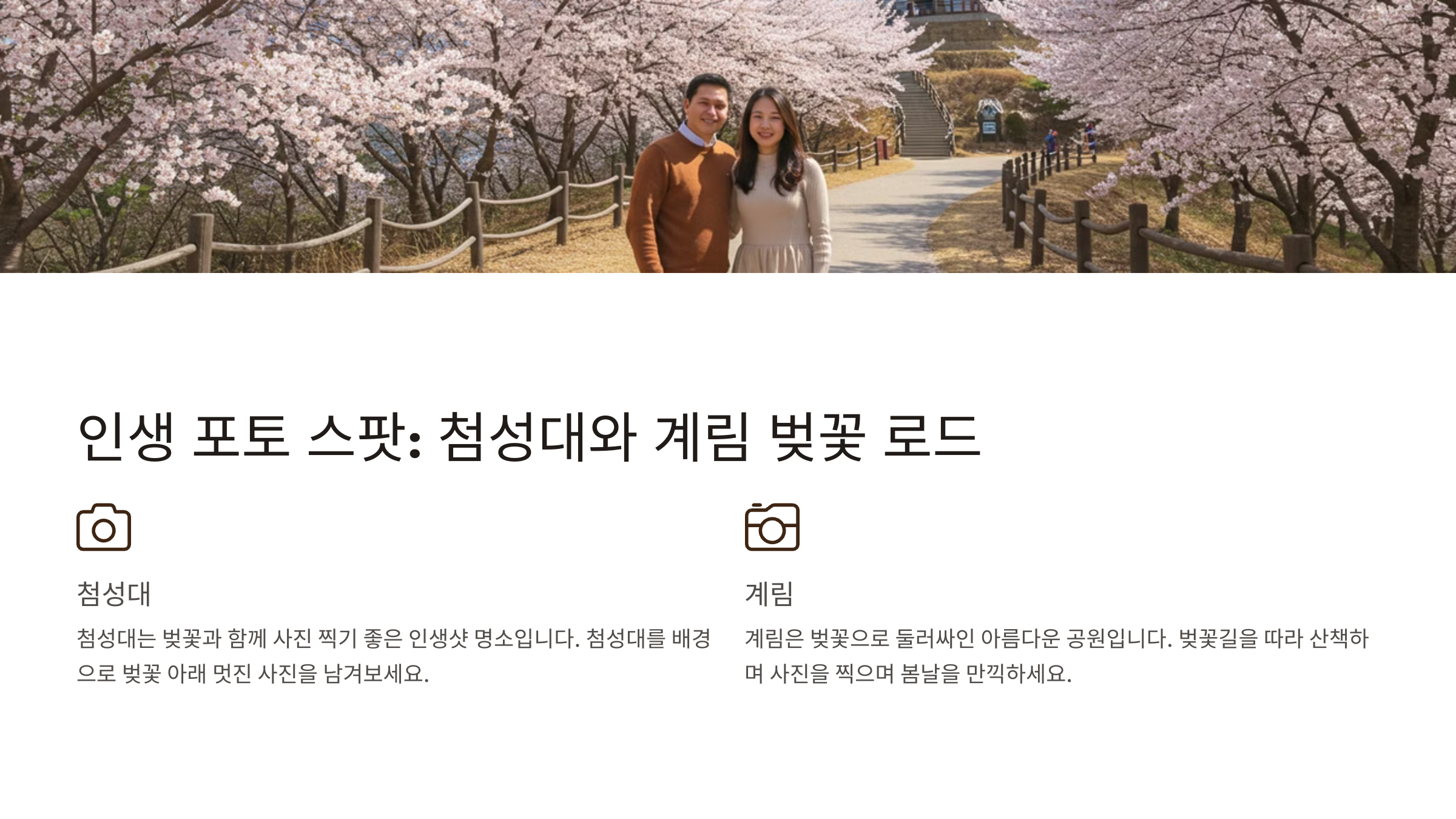 - 📷 첨성대 & 계림 벚꽃길에서는 커플 사진을 남겨보세요!
