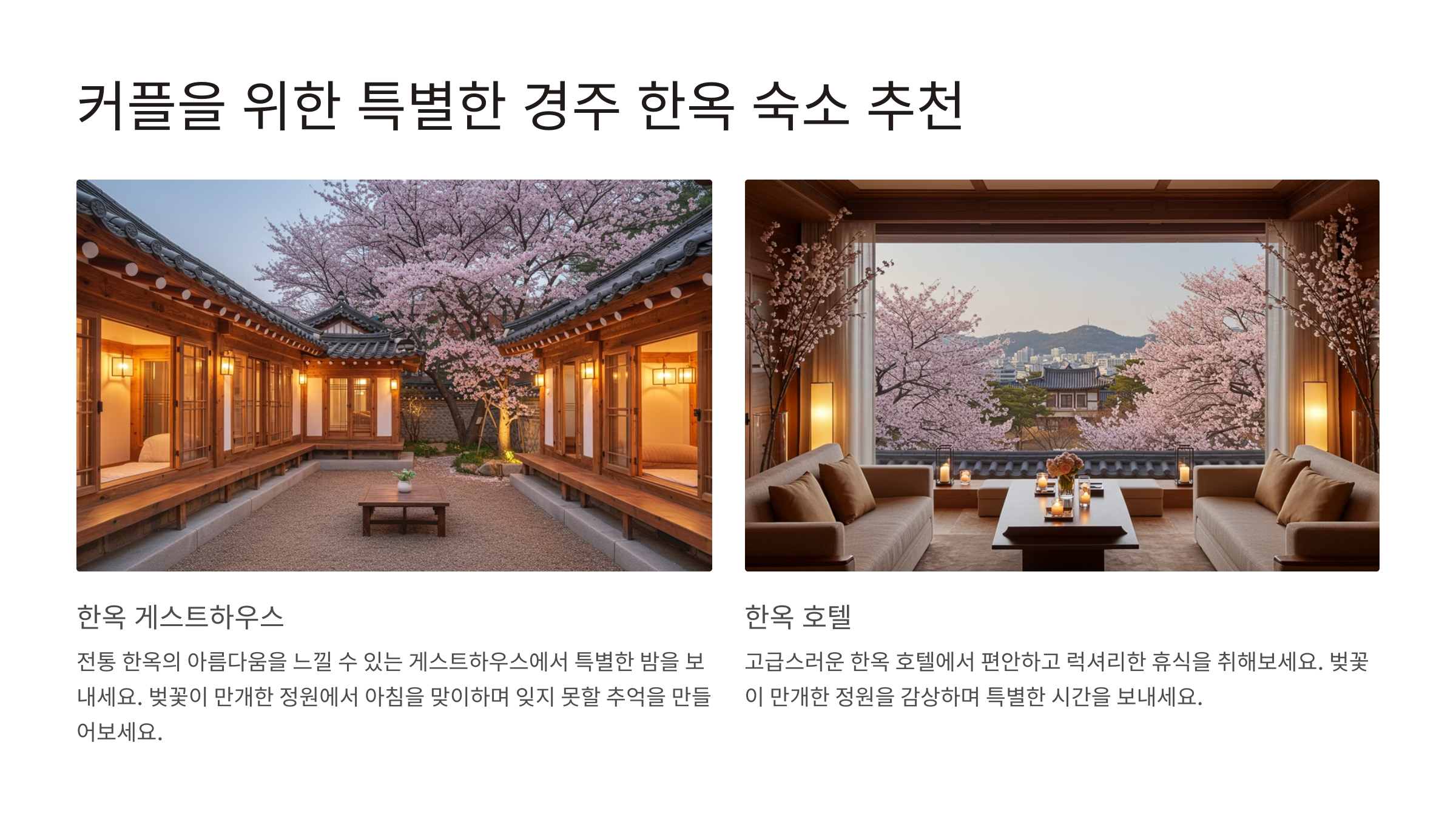 🏡 하루 종일 경주를 즐겼다면, 이제 감성 가득한 한옥 숙소에서 하루를 마무리해 보세요. 다음 섹션에서 커플을 위한 경주 한옥 스테이 추천을 소개해 드릴게요! ✅