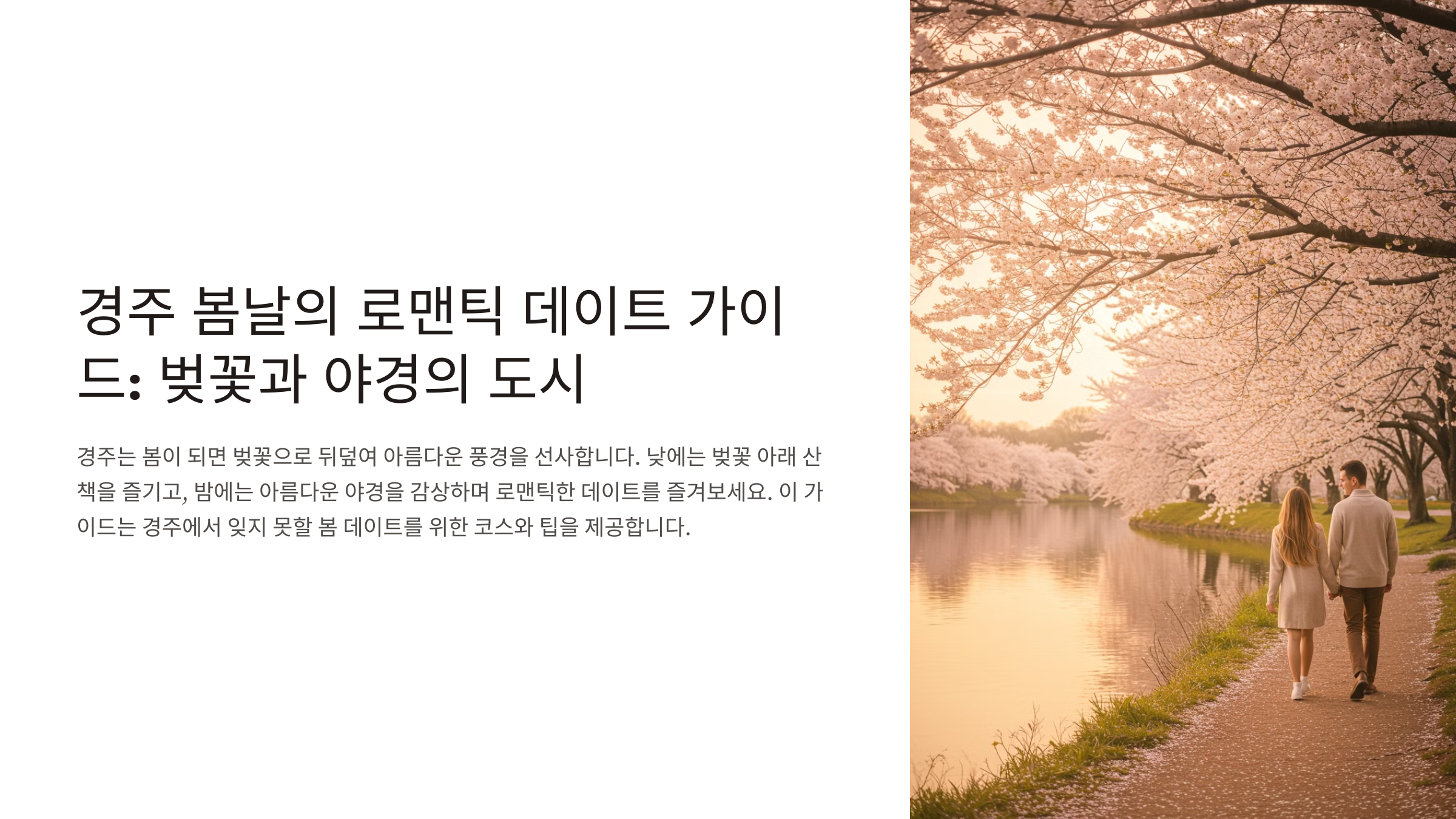 🌸 이제 경주 봄 데이트 완벽 준비 완료! 벚꽃과 함께하는 로맨틱한 하루를 즐겨보세요. ✅