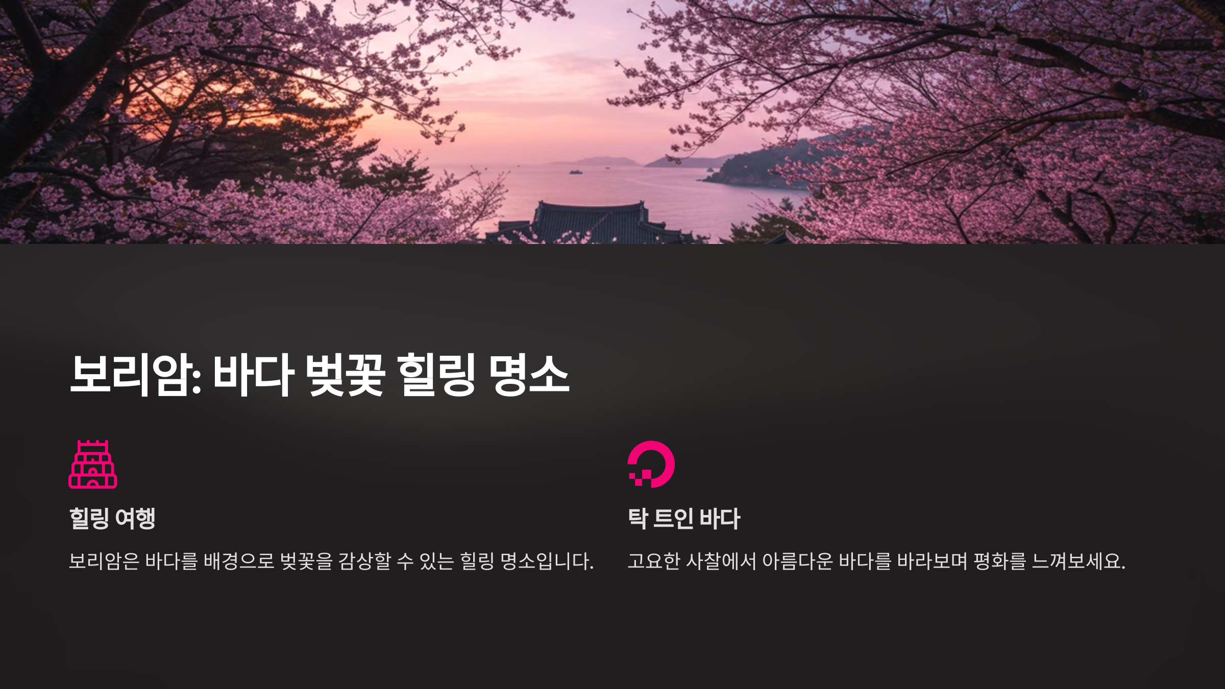 🏞️ 바다를 배경으로 한적한 사찰에서 벚꽃을 감상하고 싶다면? 다음 섹션에서 보리암을 소개해 드릴게요! ✅