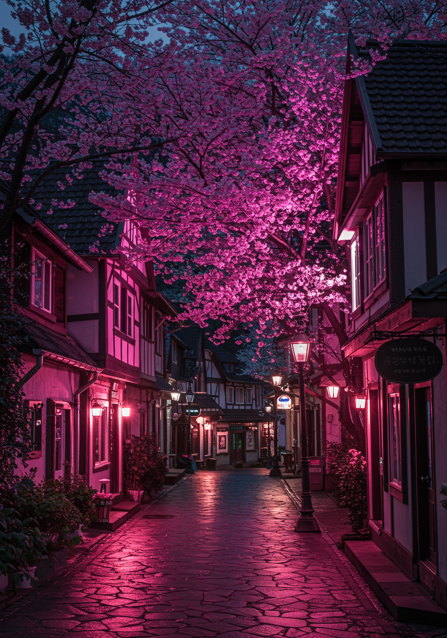 - 📷 마을 입구 벚꽃길에서 유럽풍 건물을 배경으로 인생샷을 남겨보세요!
