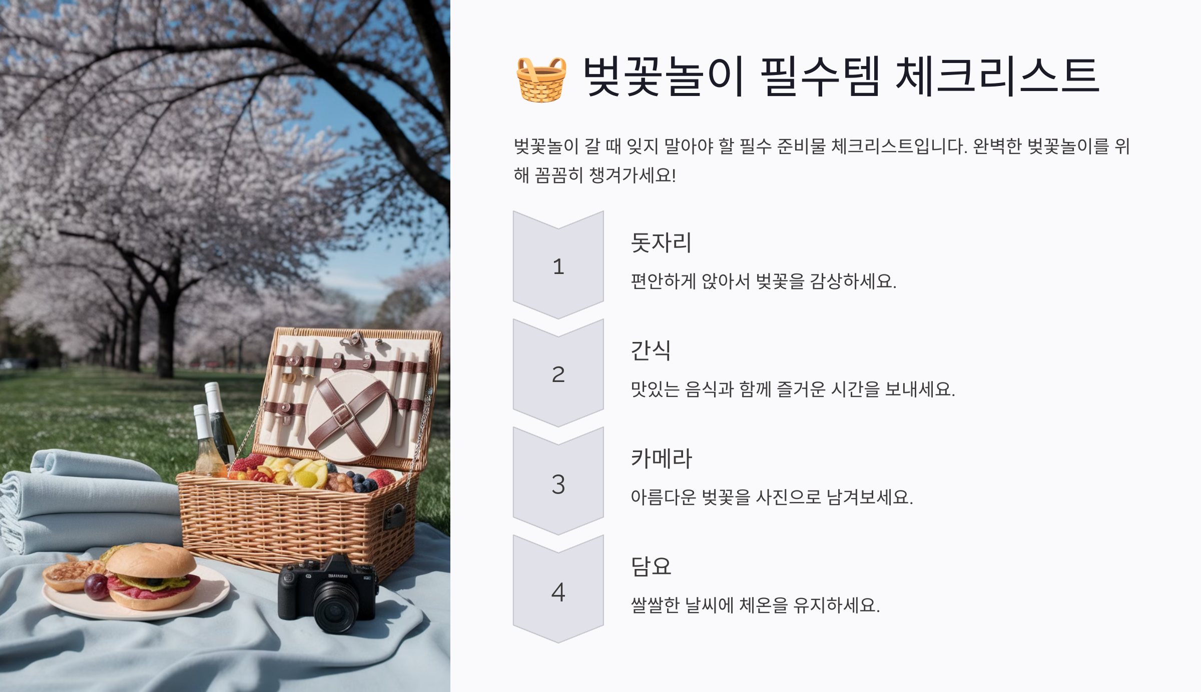 📌 벚꽃놀이를 완벽하게 즐기기 위해 미리 준비물을 점검해보세요! 🌸✨