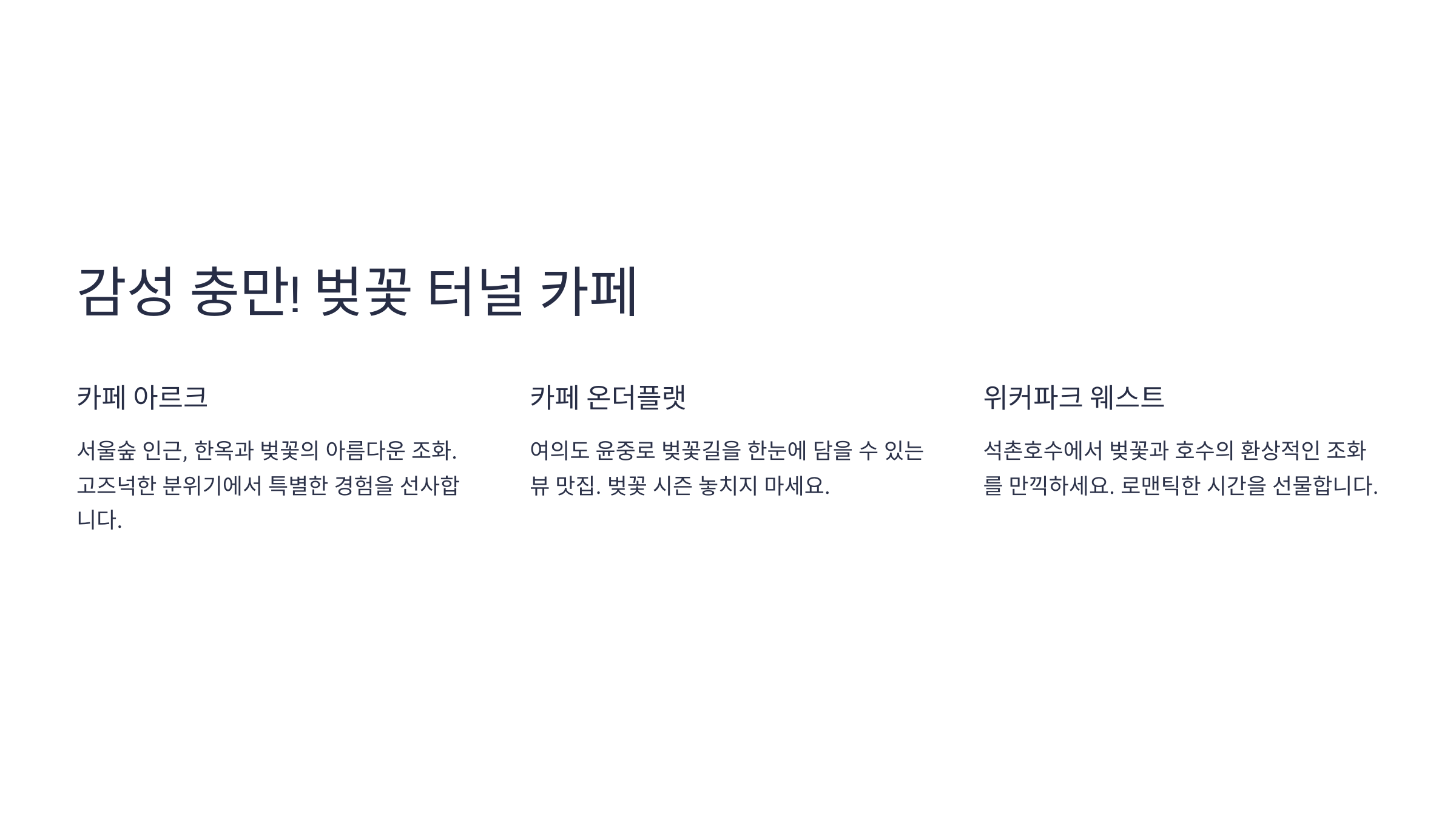 다음으로, 감성 가득! 벚꽃 터널이 있는 로맨틱 카페를 알아볼까요? 🌿💕