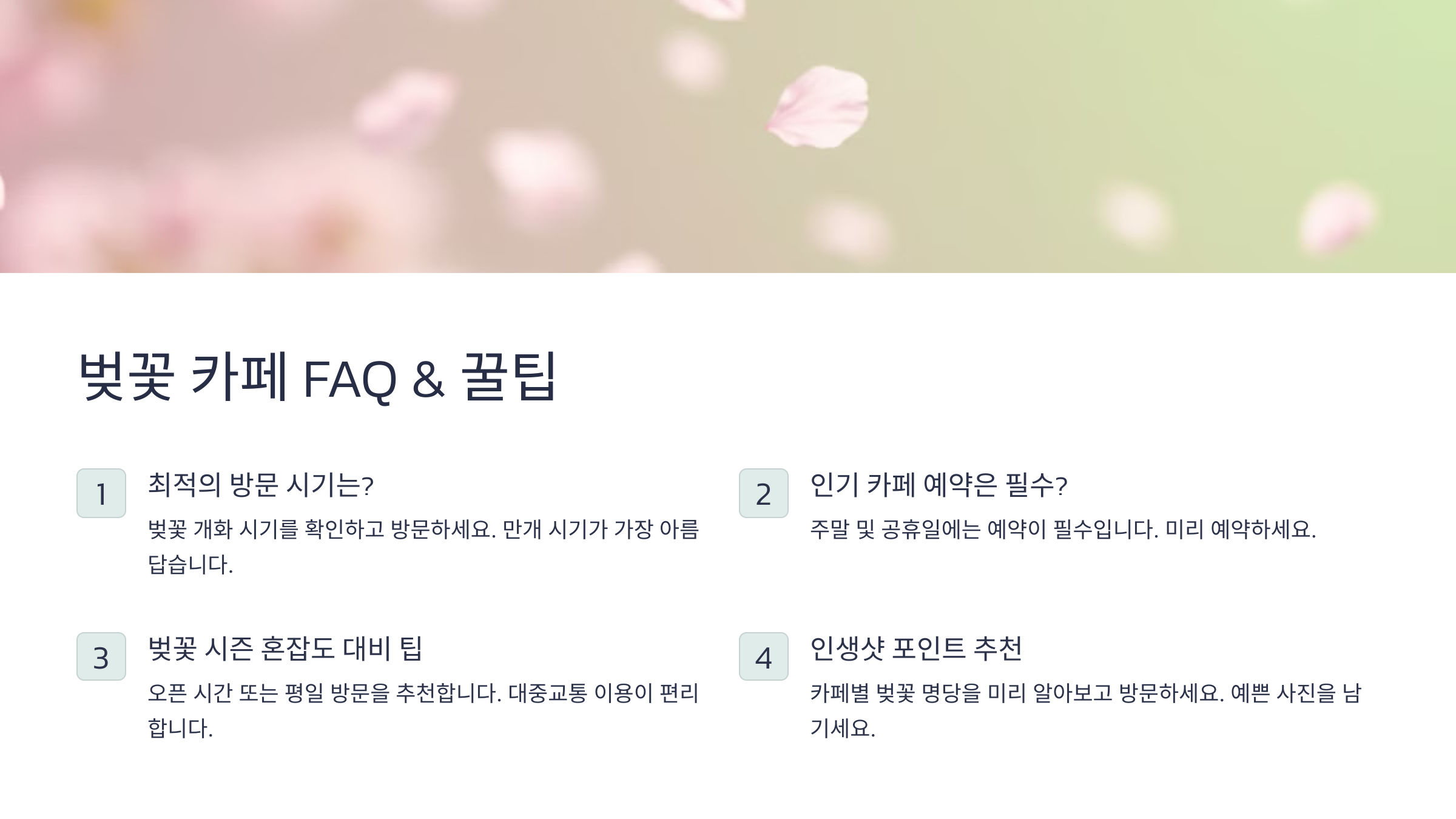 마지막으로, 벚꽃이 예쁜 카페 추천 관련 FAQ를 정리해볼게요! ❓🌸