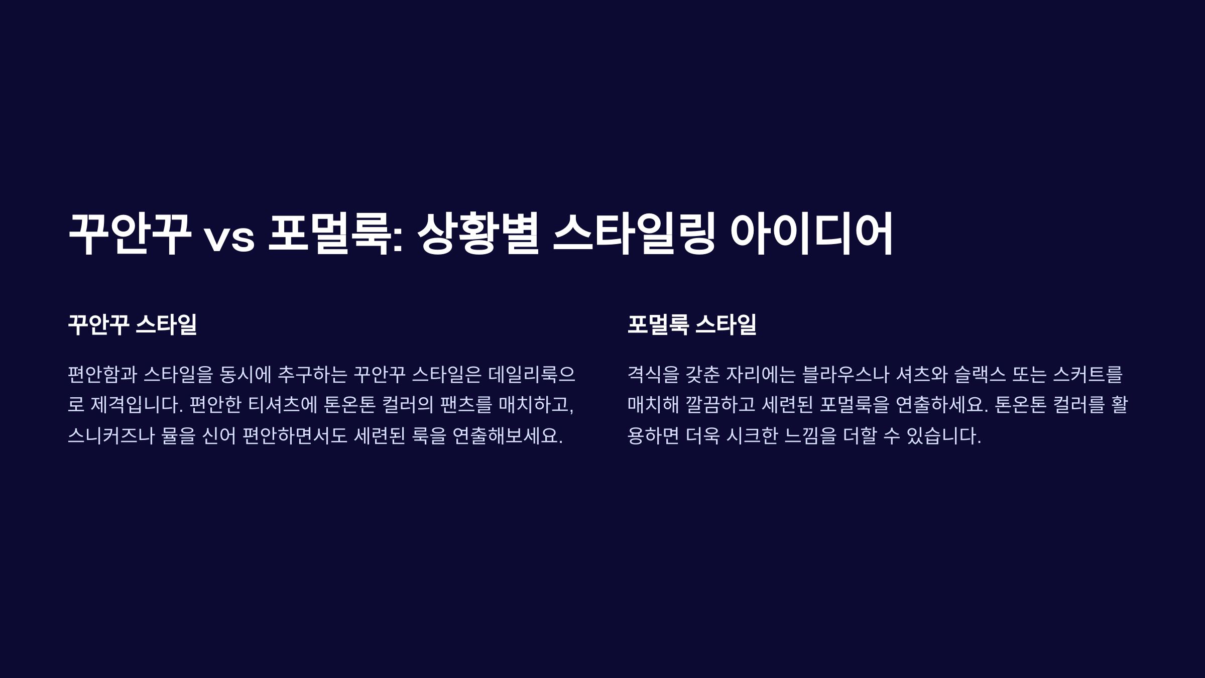 👗 꾸안꾸 vs 포멀룩 스타일링 가이드